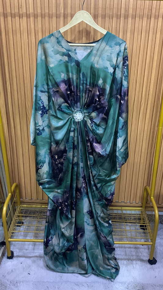 Long A- Line Dress With Printed Crop Shrug FC1951