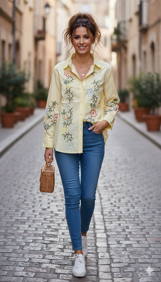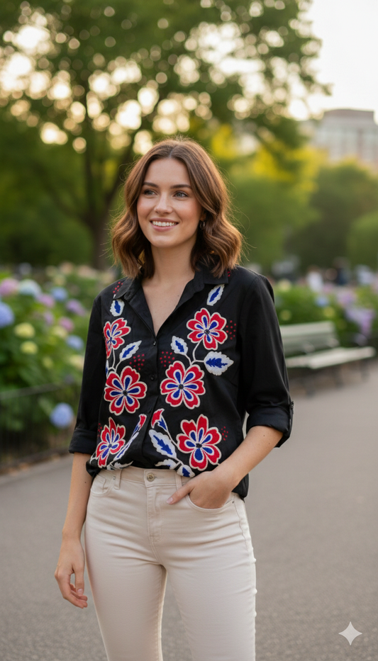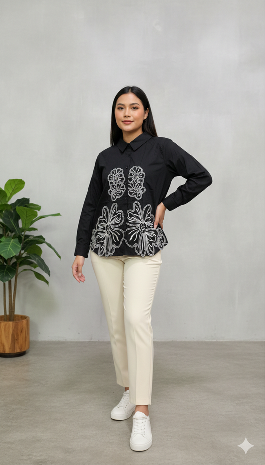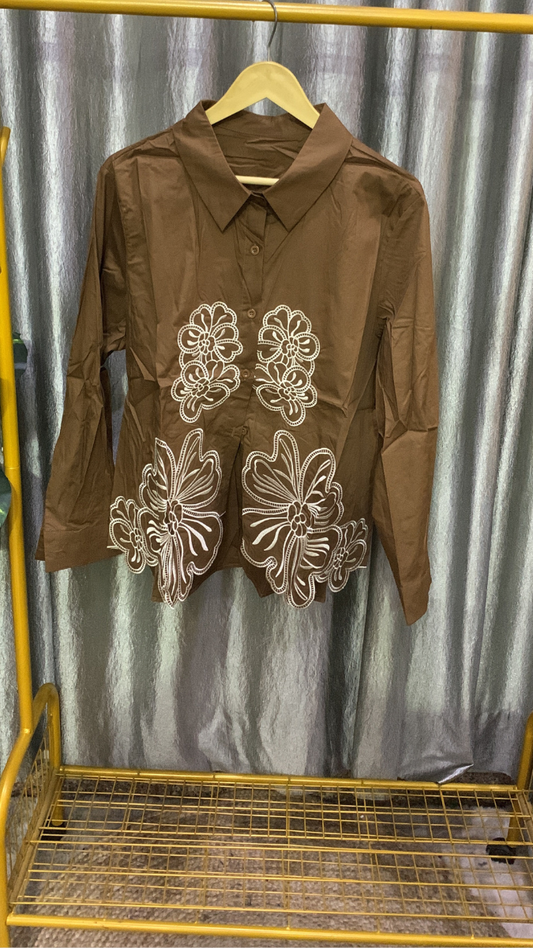 Floral Embroidery Designed Cotton Shirt FC2148