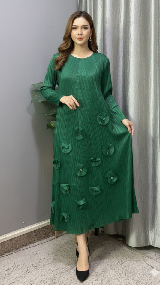 V Neck Full Sleeve Pleaded Skirt Maxi Dress FC2212
