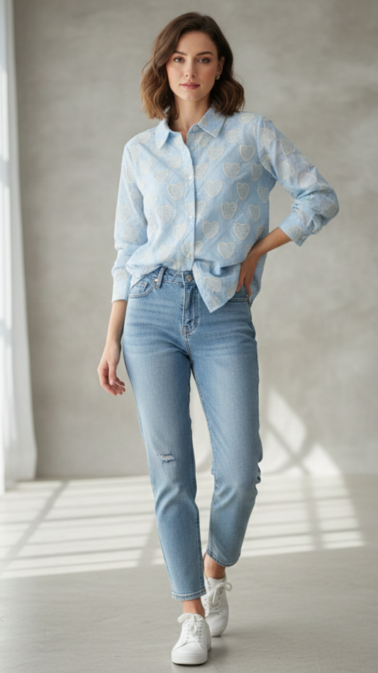 Beautiful Rhinestone Embedded Floral Print Shirt FC2203