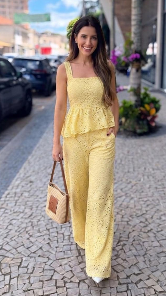 Lace Designed Peplum Top And Pant Coord Set FC2425