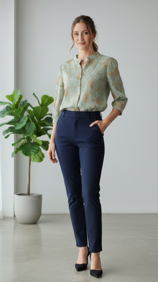 Contrast Piping Top with Trousers Coord Set FC1658