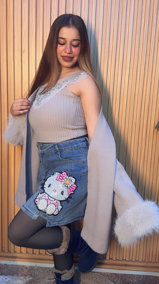 Crystal Designed V Neck Inner With Shrug Top FC2132