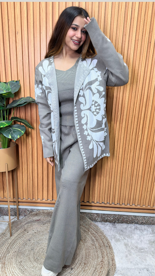 3Pc High Collar Top With Shrug Coord Set FC1698