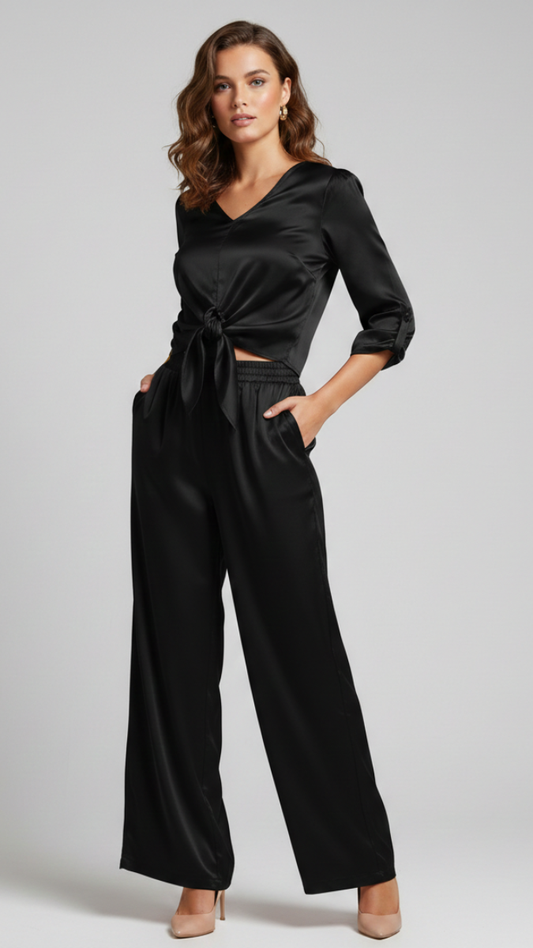 Font Tied Crop Top And Loose Pant Coord Set FC2211