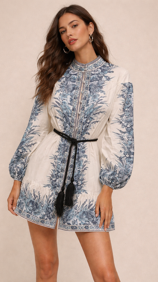 Flower Embedded High Collar Shirt FC2397