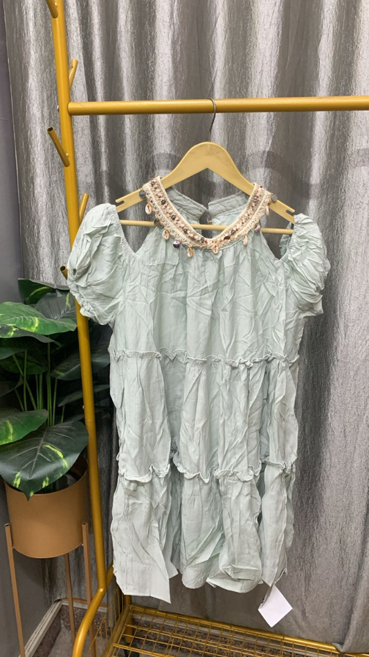 Shell Decorated Neckline Off Shoulder Mini Dress FC2376