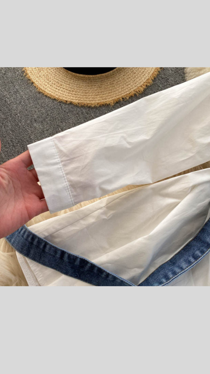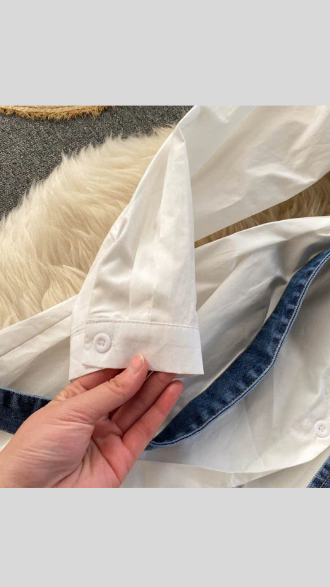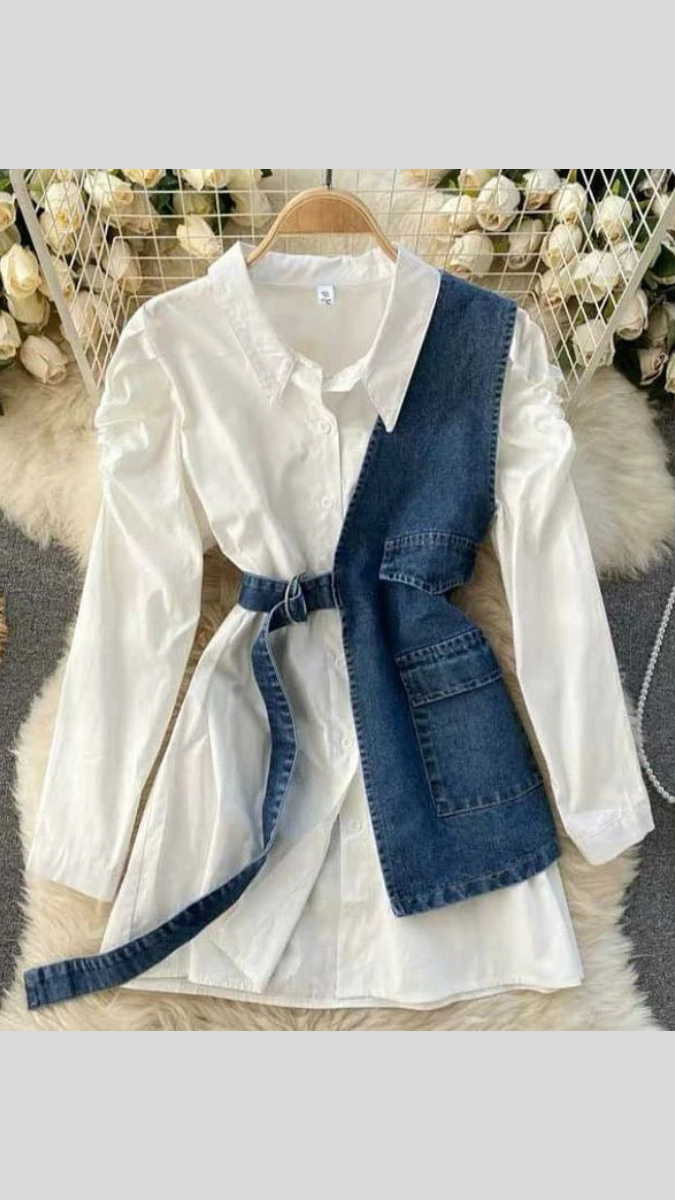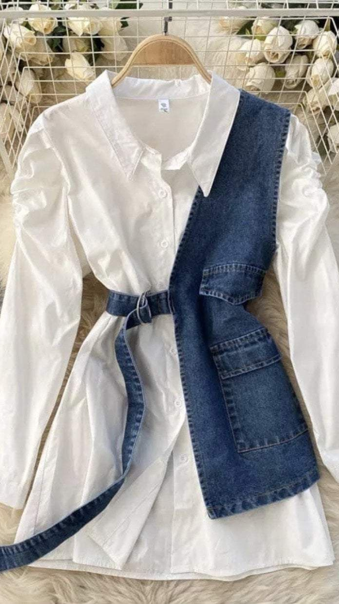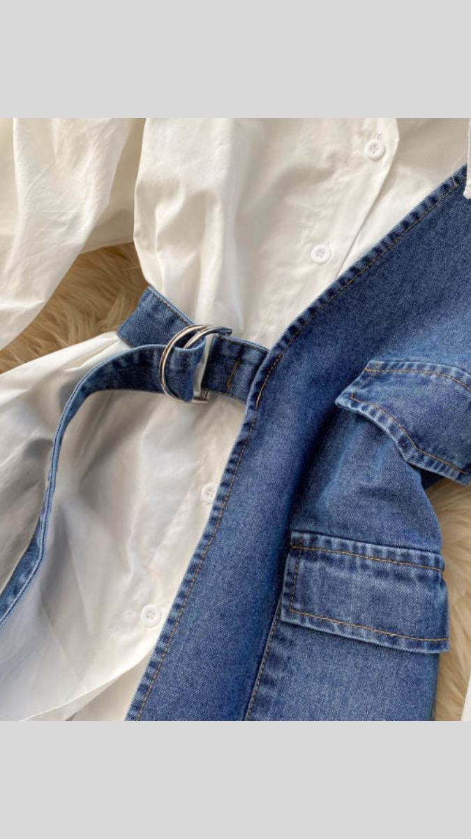 2-Piece Shirt Dress With Half Denim Vest FC1791