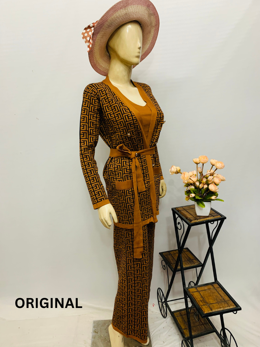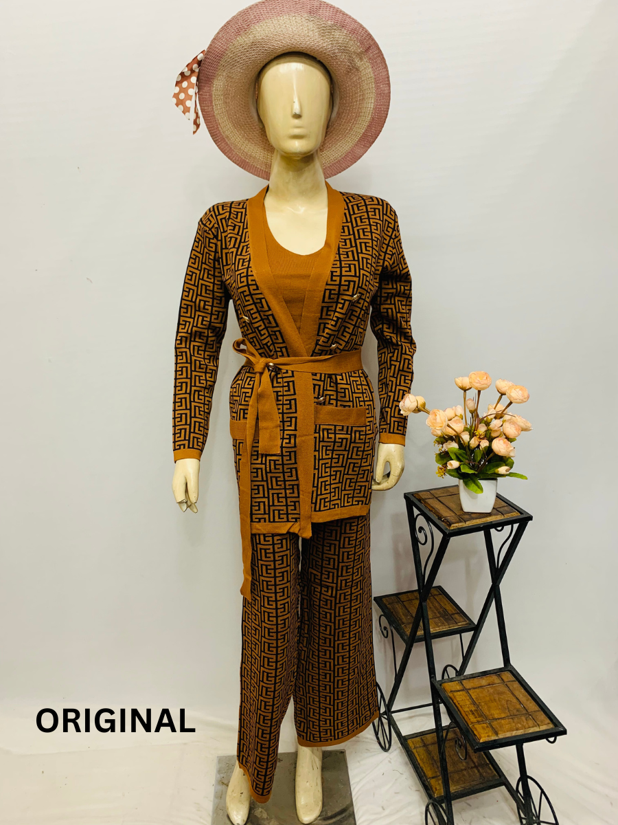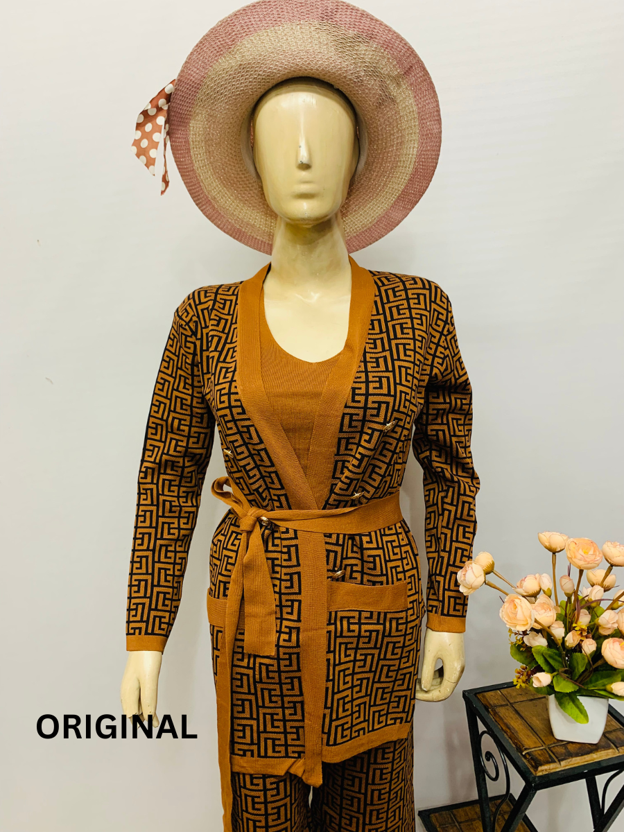 Upgrade your wardrobe with the Stylish 3 Pc Luxury Co Ord Set. Our Coord set features Top, inner and Pant. Top features full sleeves, printed all over, V neck, two pockets in front and long length. Inner has crop length and sleeveless. Pant features elastic waist and ankle length. From a day occasion, tonight's get-together.