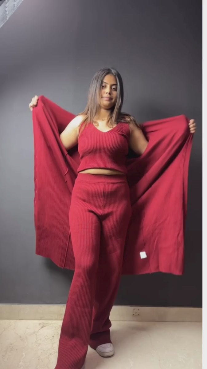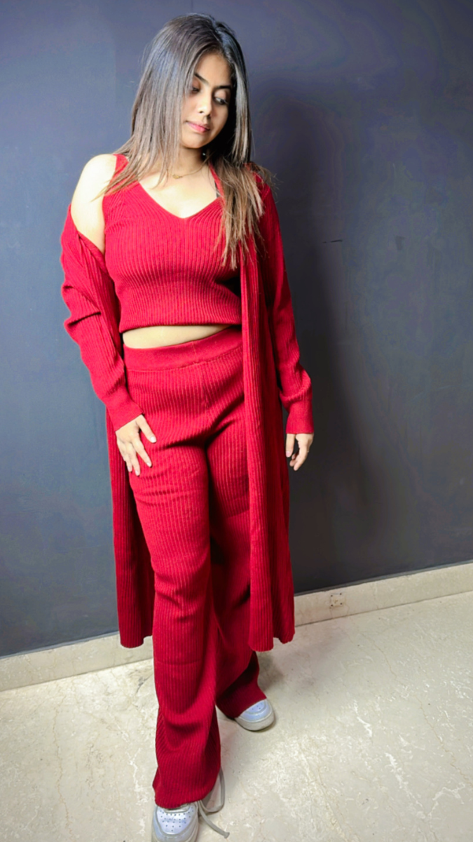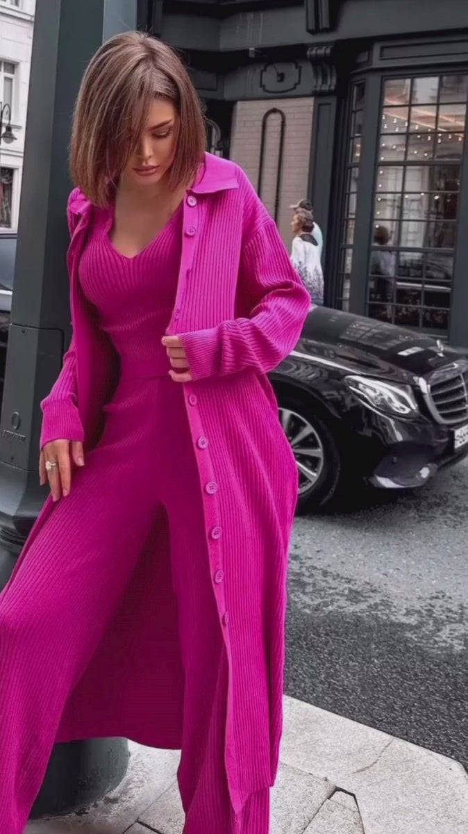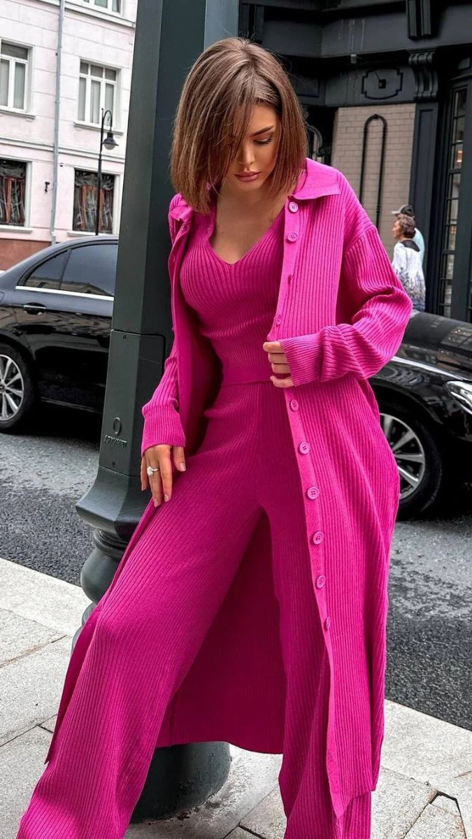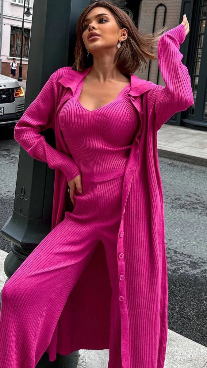 This 3-piece coordinated set includes a long shrug, providing ultimate versatility and style. With this set, you can mix and match to create a variety of outfit options. Made with high-quality materials, this set is both fashionable and functional for any occasion.
