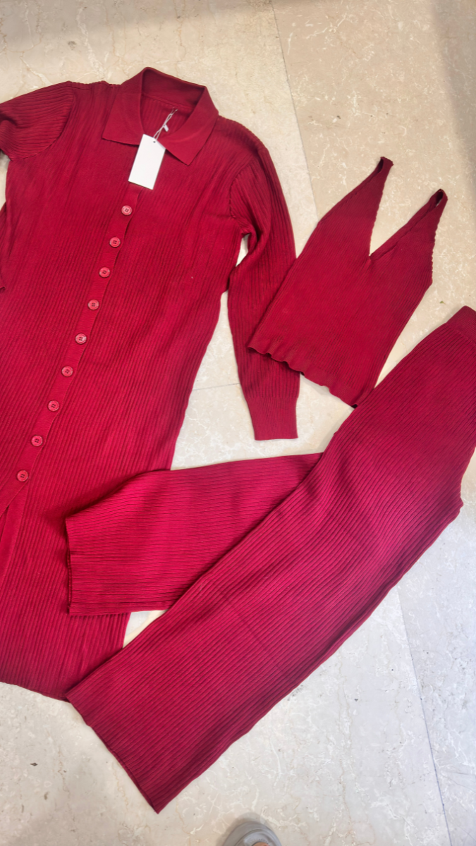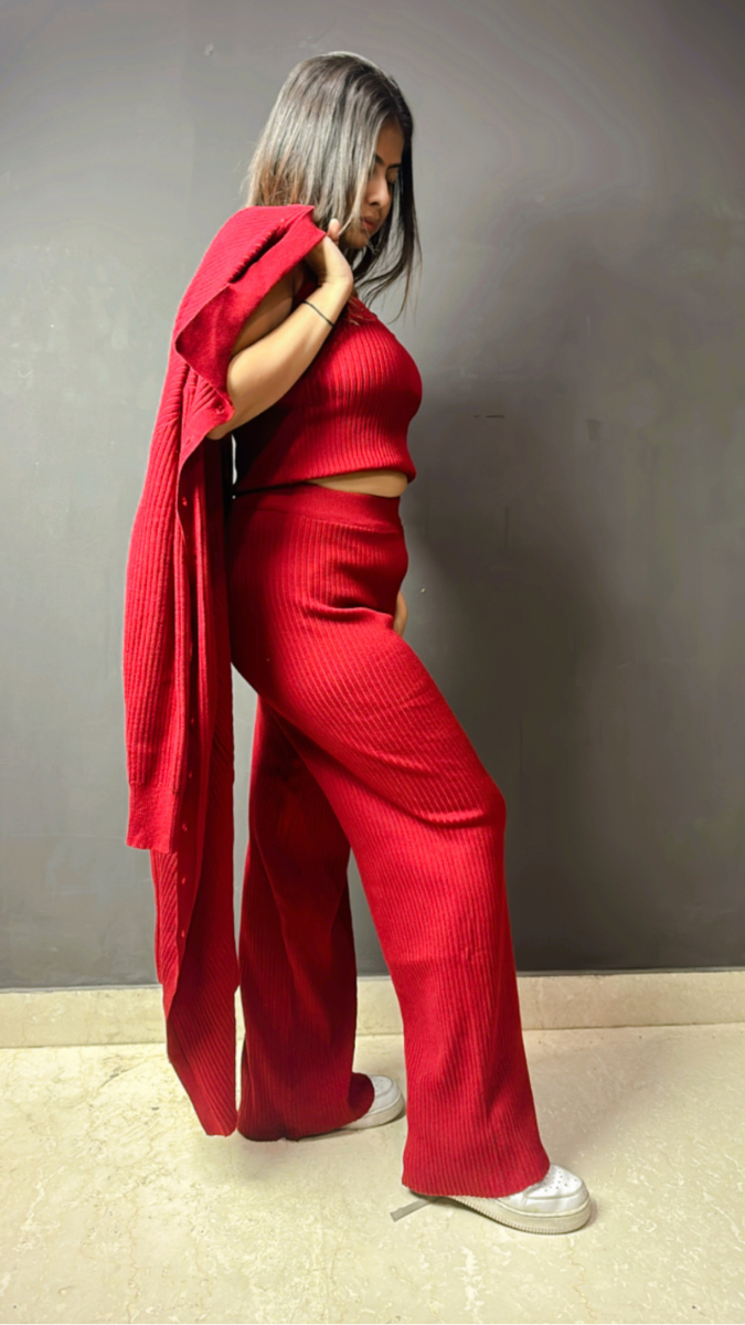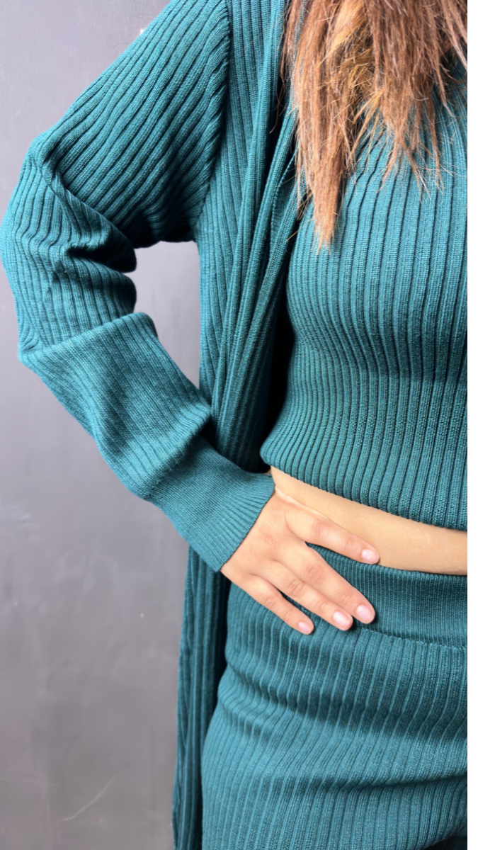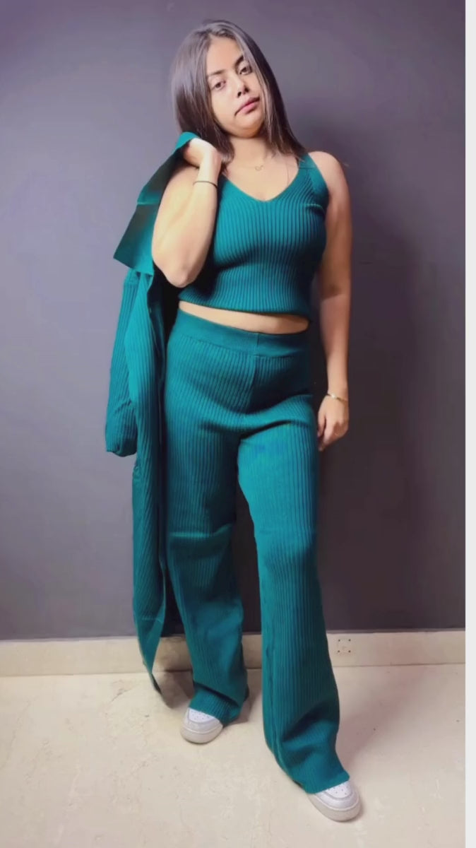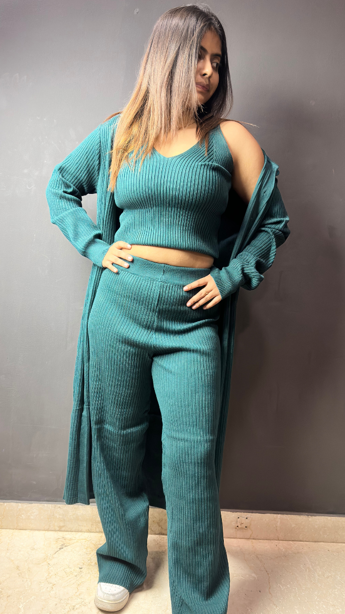 This 3-piece coordinated set includes a long shrug, providing ultimate versatility and style. With this set, you can mix and match to create a variety of outfit options. Made with high-quality materials, this set is both fashionable and functional for any occasion.