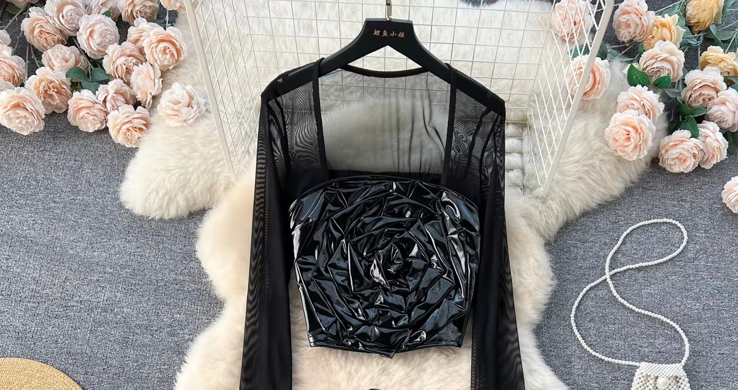 3D Rose Leather Top FC1195