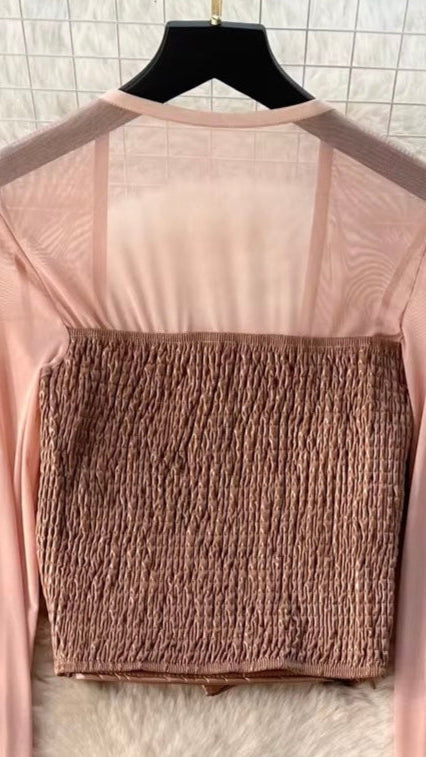 This top has ruffled leather rose on front, padded, elastic band at back and power net full sleeves. This top is suitable for dating, outdoor, party, office, work, casual, street, home and vacation.