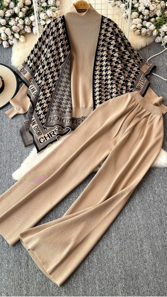 Upgrade your wardrobe with this elegant and versatile 3-piece coord set. The high collar top and shrug provide a touch of sophistication, while the coordinating set offers endless styling possibilities. Elevate your style game with this must-have addition to your collection.