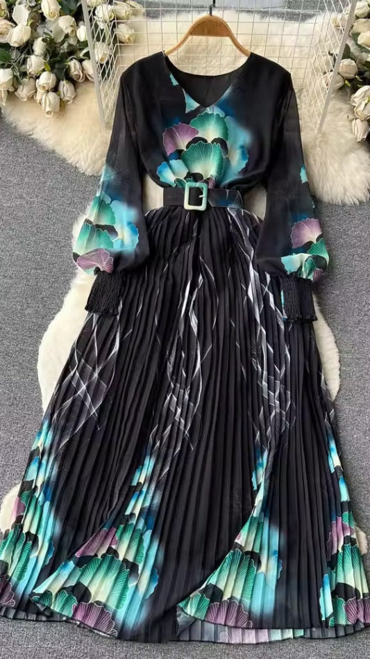 Introducing our Balloon Sleeves Floral Dress, the perfect addition to your wardrobe. This dress features flower printed all over, V neck, balloon sleeves, belt in waist and elastic waist. Perfect for daily wear, nightclub, date, party, casual, dating, vacation and beach.