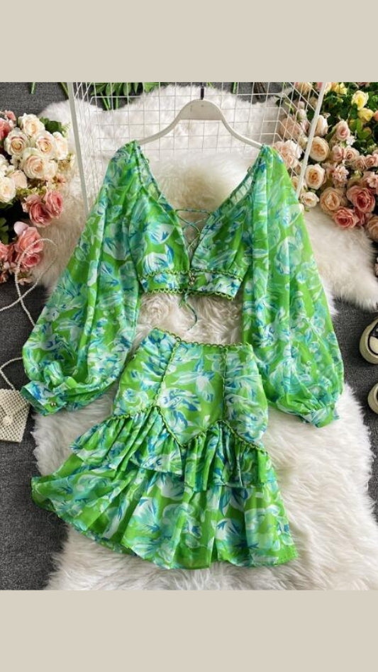 Beautiful Chiffon Beach Wear Printed Skirt Top FC2001