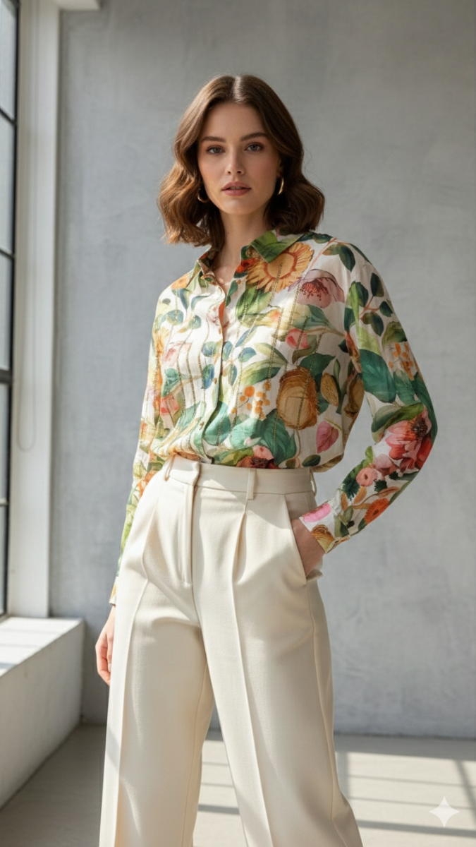 Fresh, feminine, and effortlessly elegant — this beautiful rhinestone embedded floral print shirt is designed to brighten your wardrobe. Featuring a charming floral print enhanced with delicate rhinestone embellishments, it adds a subtle sparkle that elevates your everyday style. Crafted for comfort and versatility, this shirt pairs perfectly with jeans, trousers, or skirts, making it ideal for casual outings, brunch dates, or semi-formal occasions. Stylish yet easy to wear, it’s a statement piece with a graceful touch.