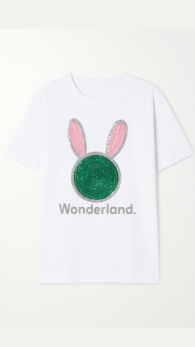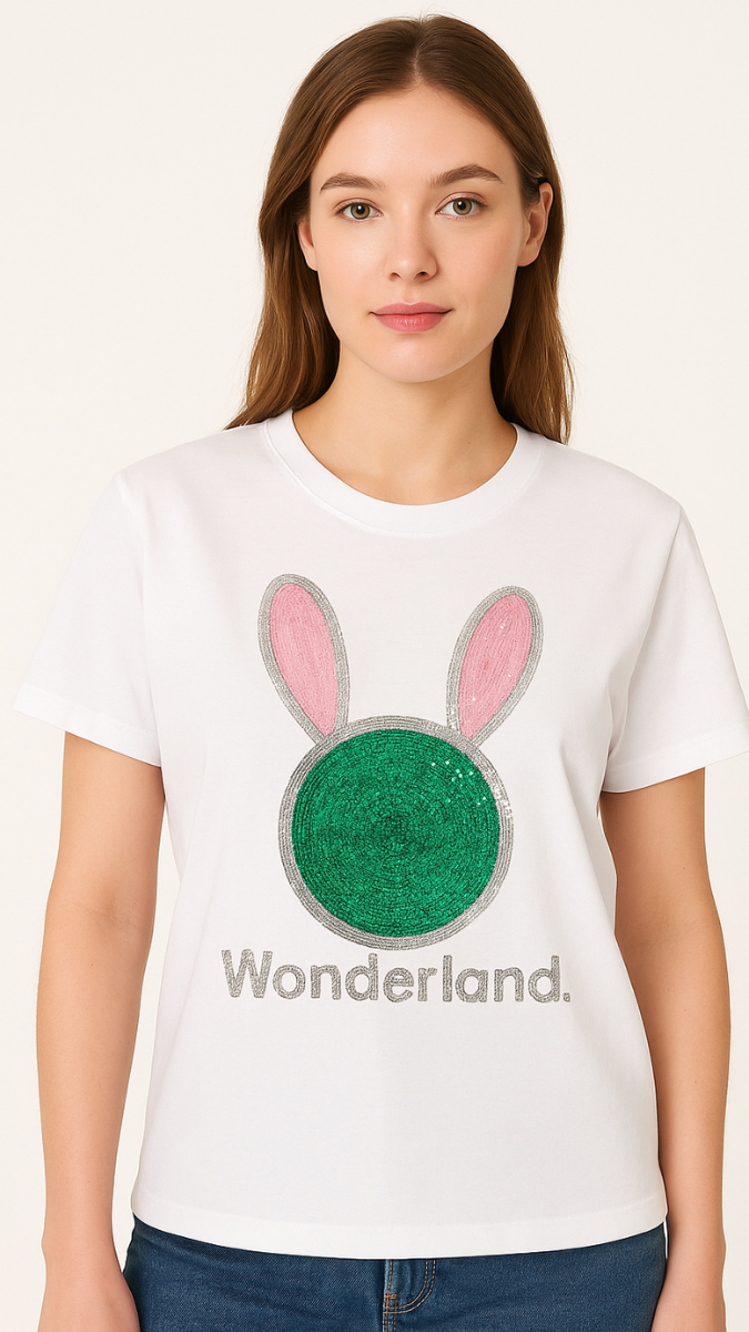 Step out in style with this eye-catching T-Shirt featuring a bunny shape designed with rhinestone, half sleeves and round neck. It offers a comfortable fit and a touch of elegance . Perfect for casual or smart-casual occasions, this versatile T-Shirt is a must-have.