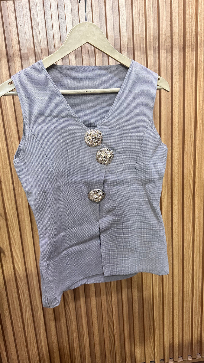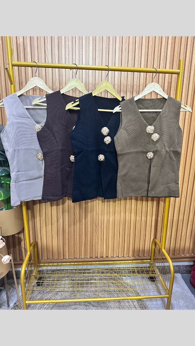 Elevate your layering wardrobe with the Buttoned Sleeveless Koti. Expertly crafted for a tailored fit, this koti combines sleek design with functional button closure, allowing versatile styling over tops and dresses. Its sleeveless cut ensures comfort and ease of movement, making it an ideal choice for transitional seasons or adding dimension to your ensemble without bulk.