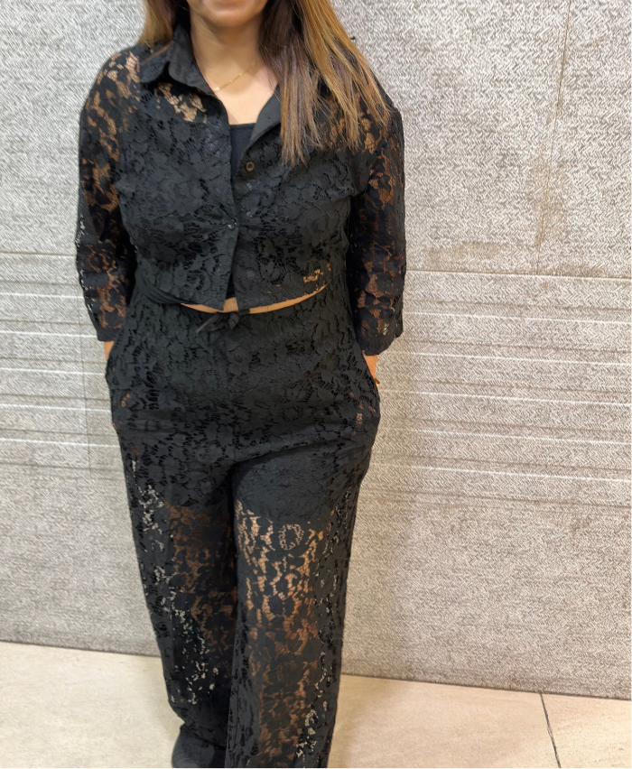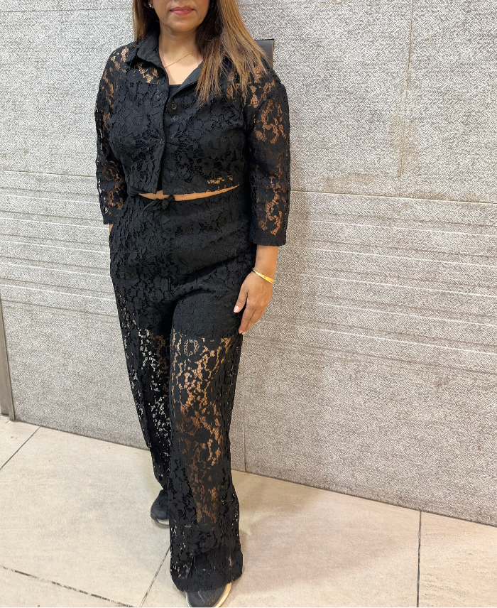 This stylish co-ord set is perfect to keep you cozy and looking like a dream wherever you go! They are made for the perfect airport looks or your chilling at home selfies. Top features crochet, crop top, collar, button at front and full sleeveless. Pant has elastic high waist pants, crochet and pocket on side. Suitable for office wear, beach wear, summer wear.