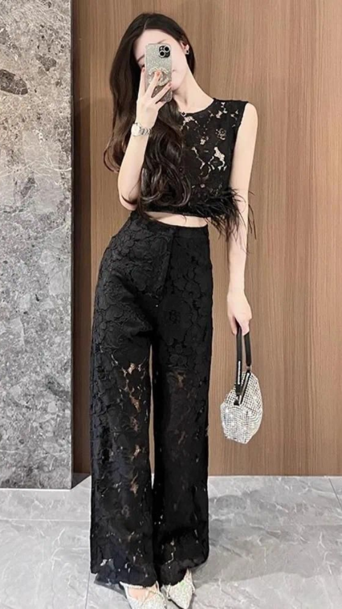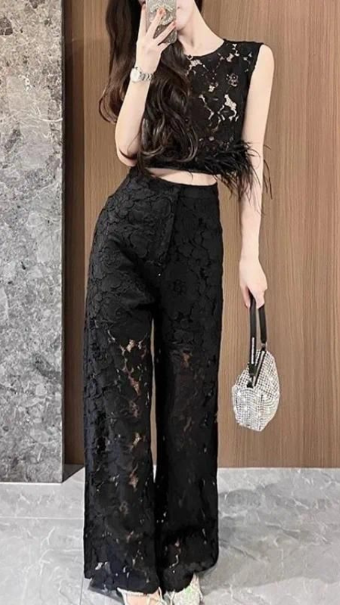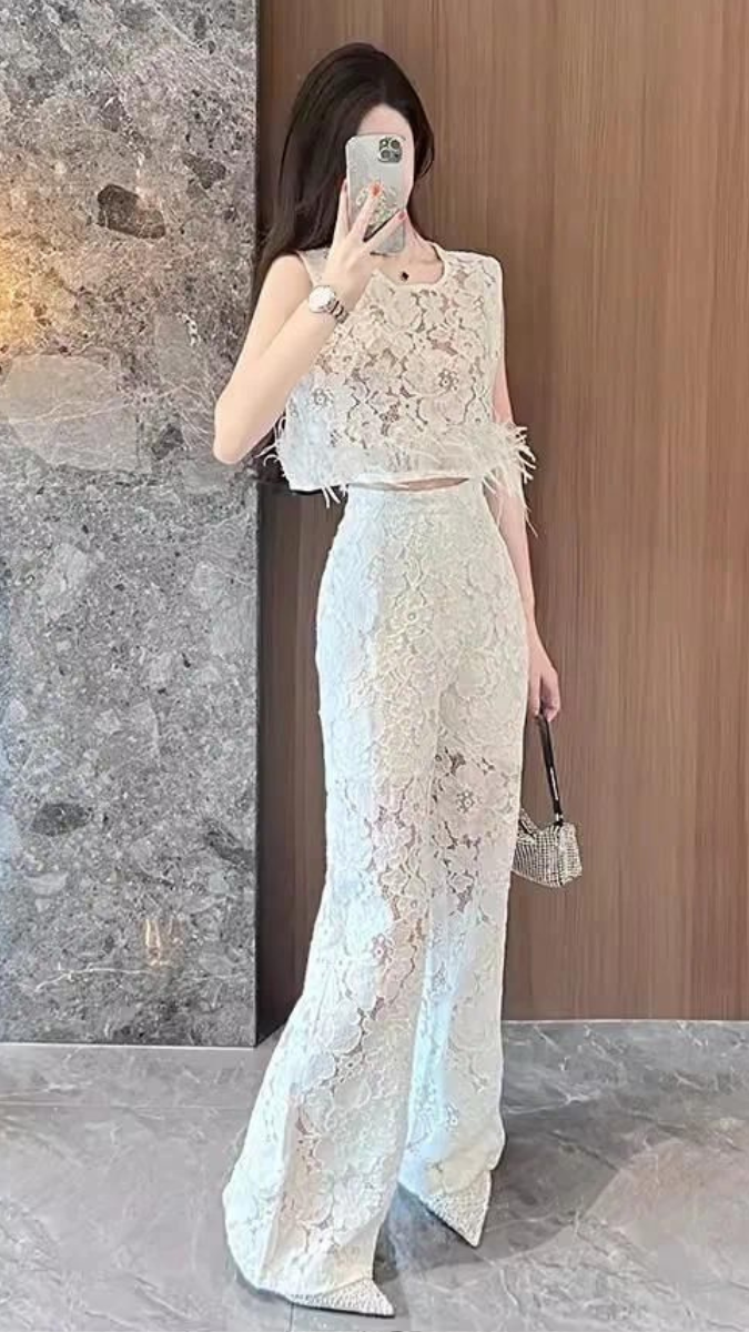 Experience comfort and style with our Crochet Coord Set With Fur. This sleeveless crop top features intricate crochet details and luxurious fur trim, providing a chic and trendy look. Perfect for any occasion, elevate your wardrobe with this must-have set.