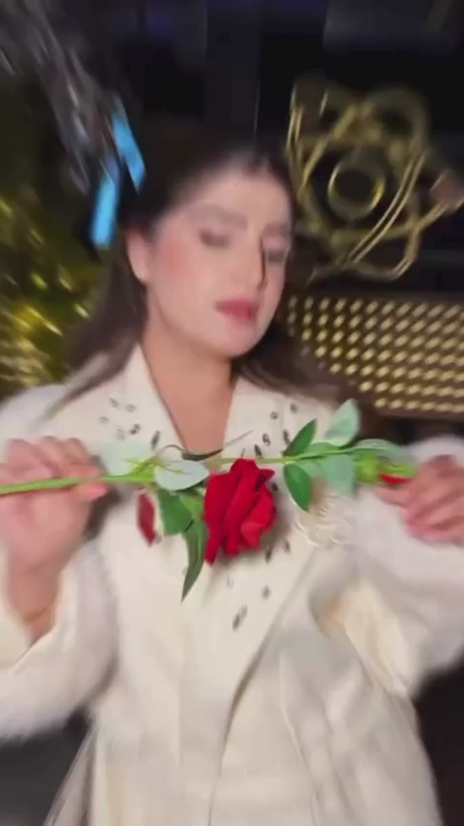 Elevate your formal wardrobe with this sophisticated blazer, featuring an exquisite crystal-embellished collar that catches light beautifully. The luxurious fur-trimmed sleeves add an element of refined elegance, while the pearl-adorned belt cinches the waist for a flattering silhouette. Crafted with meticulous attention to detail, this statement piece seamlessly transitions from boardroom meetings to evening events. The combination of premium materials and intricate embellishments makes it an investment piece that commands attention and exudes confidence.