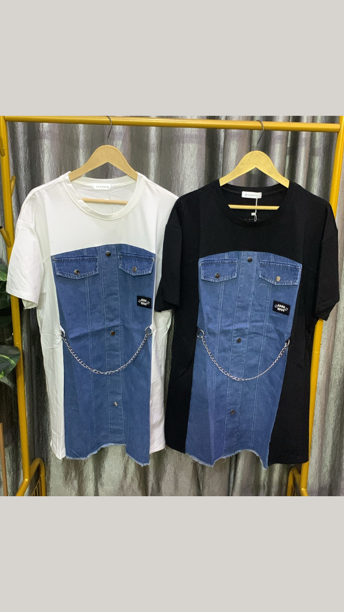 Denim Embedded Front Half Sleeve Mini Dress FC2182