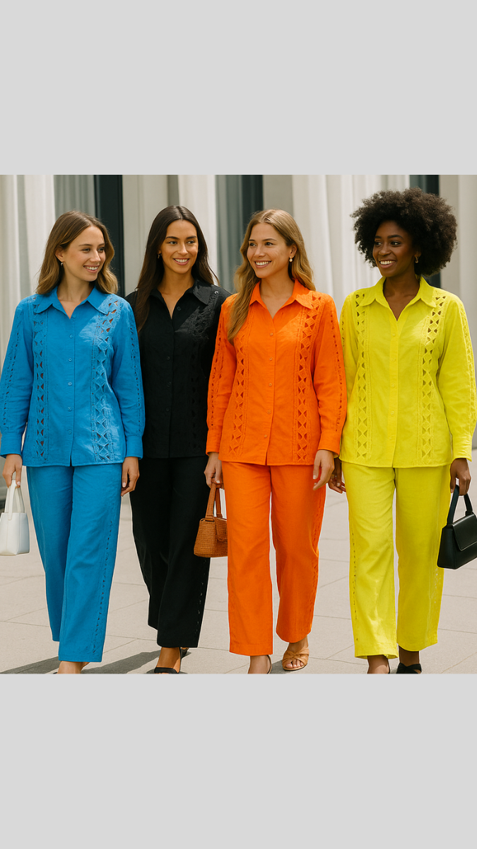 Our Designer Lace Co-Ord Set is summer-friendly color featuring pants with shirt is for sure a show-stopper. Shirt has lace design all over, collar neck, full sleeves and pants has ankle length, elastic waist, lace design on sides . Co- Ord is suitable from a day occasion, tonight's get-together.