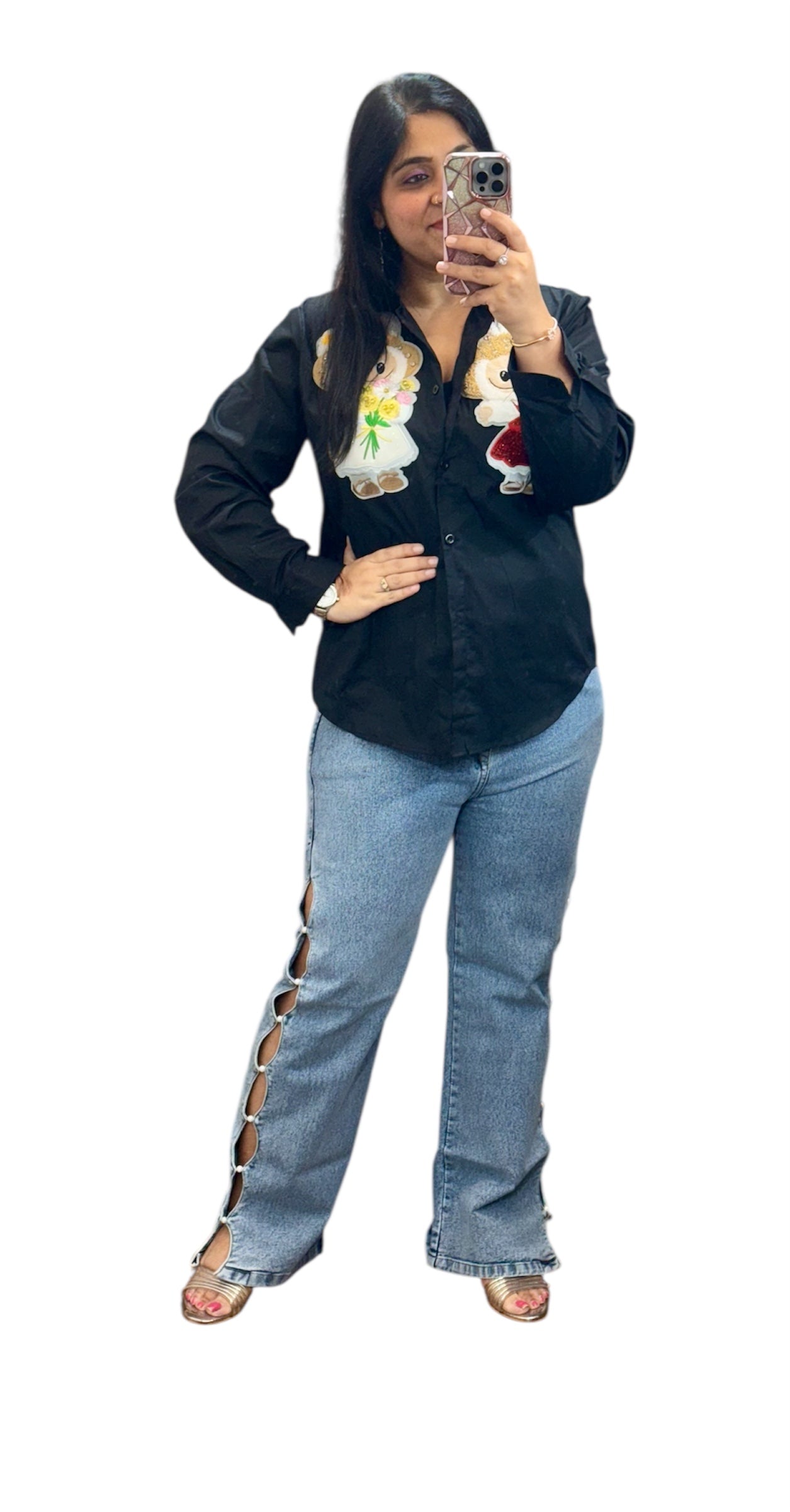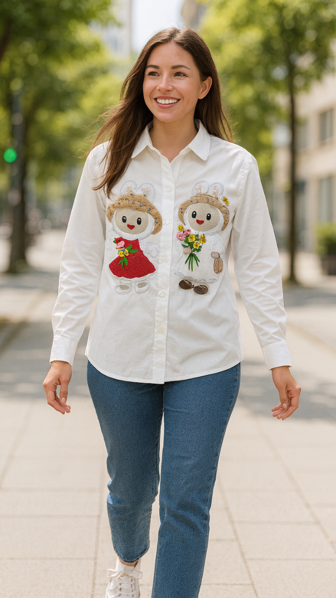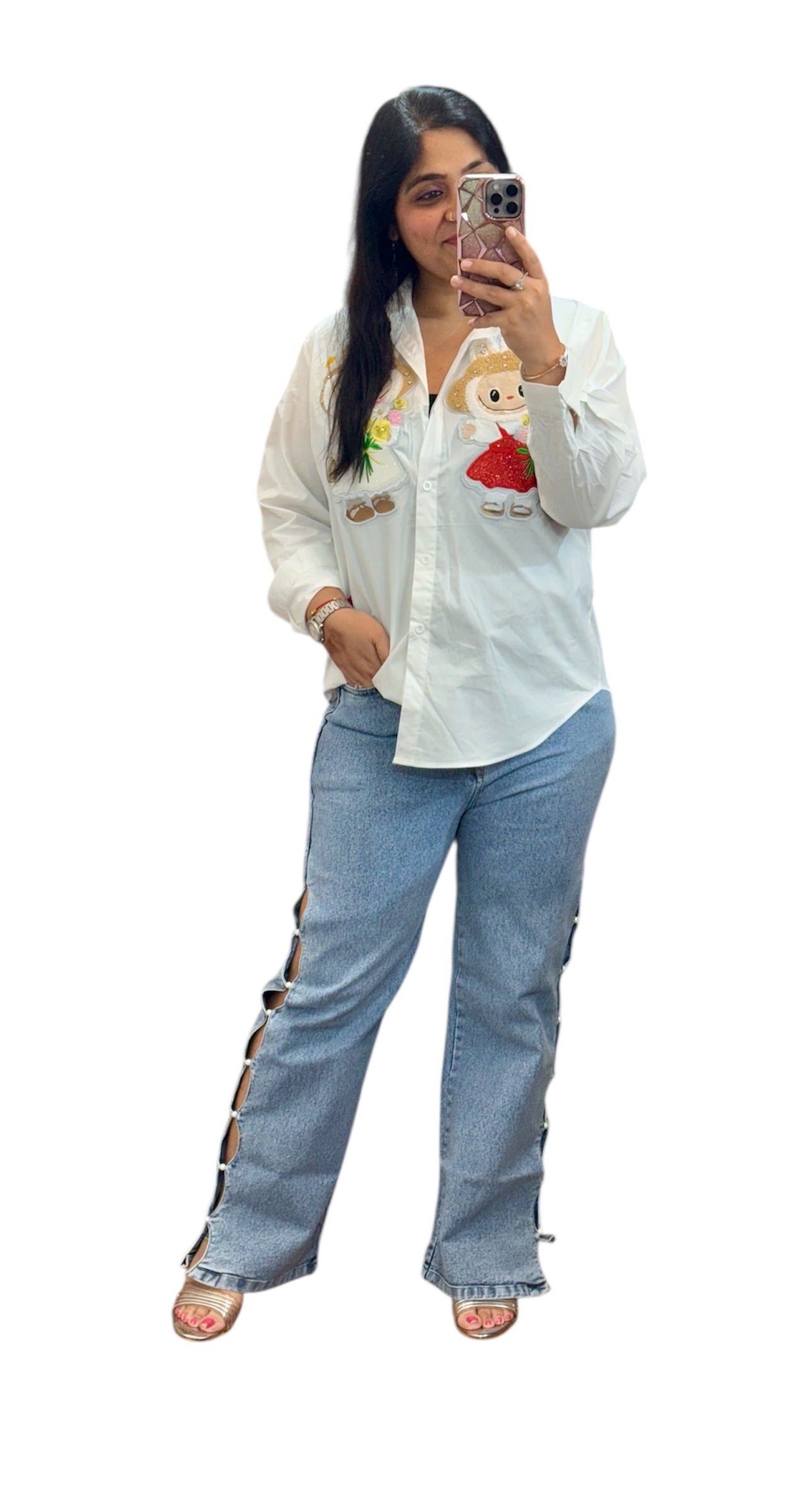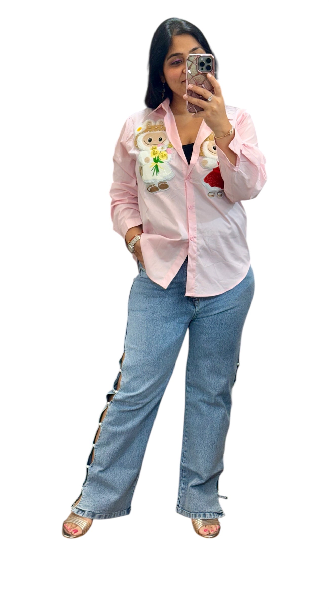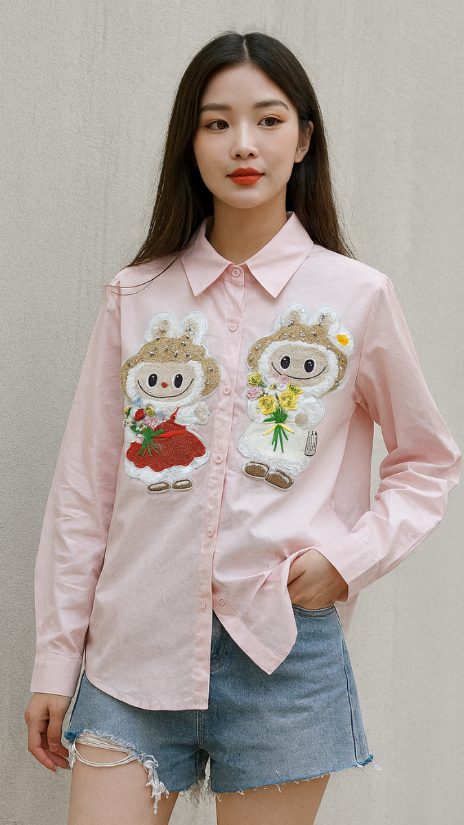 The Doll Embedded Shirt combines unique design with quality craftsmanship. Featuring a distinctive embedded doll detail, this shirt adds a playful yet sophisticated touch to your wardrobe. Crafted from comfortable, durable fabric, it ensures a perfect fit and lasting wear. Ideal for those seeking a statement piece that blends creativity with everyday style.