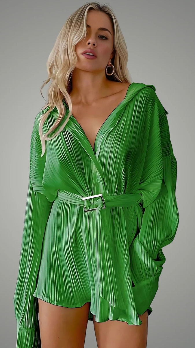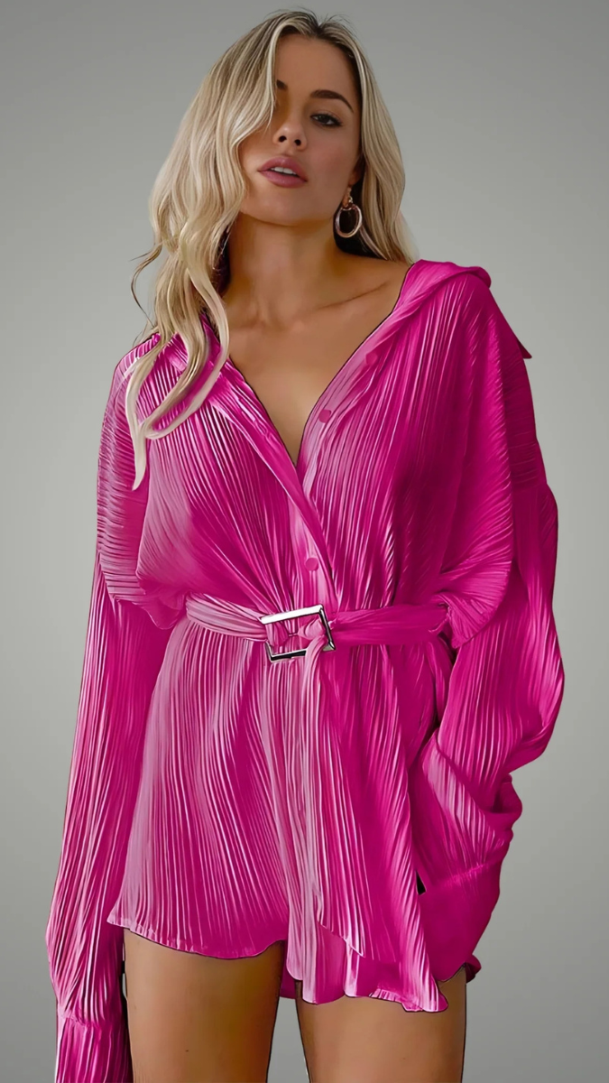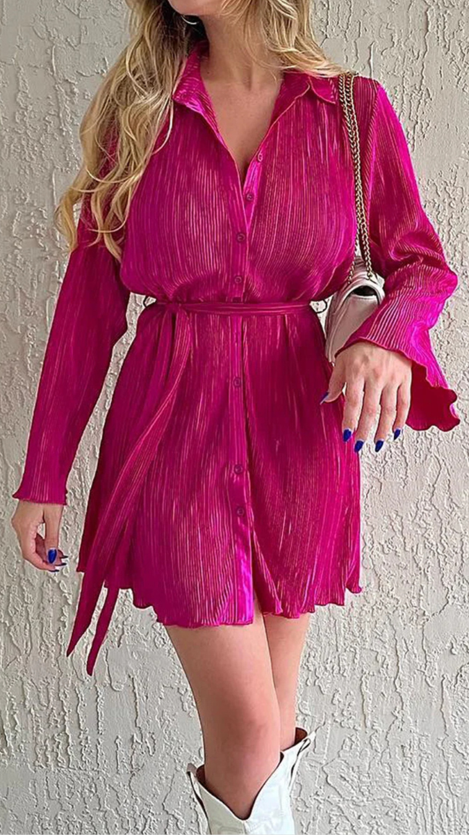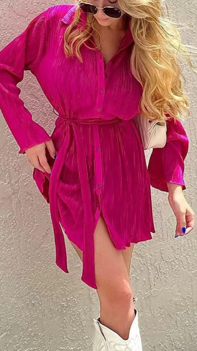 This dress features a dropped shoulder design, providing a relaxed and effortless silhouette. The shirt dress style adds versatility and can be dressed up or down for any occasion. The dropped shoulders offer a modern and comfortable fit, perfect for all-day wear.