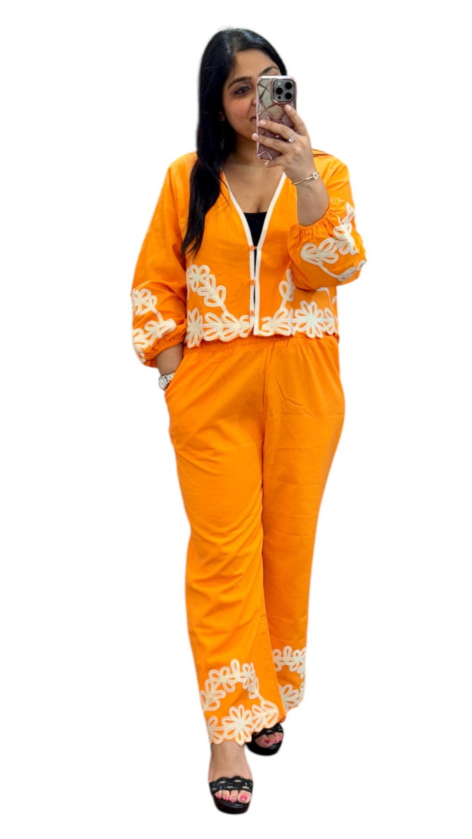 The Elastic Sleeve Floral Design Coord Set features a seamless blend of comfort and sophistication. Designed with elastic cuffs for a secure fit and wide-leg pants for ease of movement, this set is enhanced by a delicate floral print that adds a refined touch. Ideal for versatile styling, it offers both elegance and practicality for modern wardrobes.