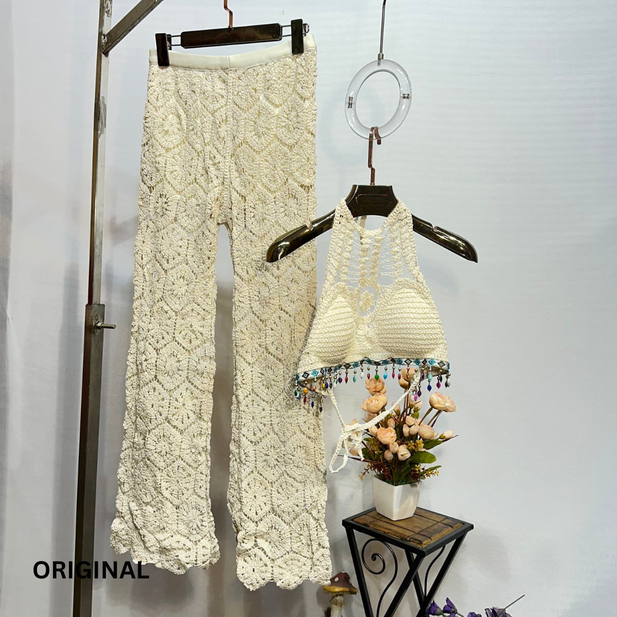 FC Halter Top & Tropical Print Wide Leg Pants