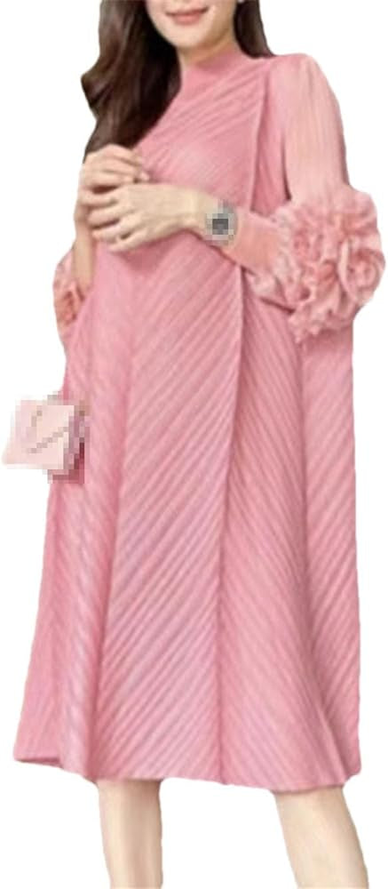 Fc Black Round High Neck Pleated Dress