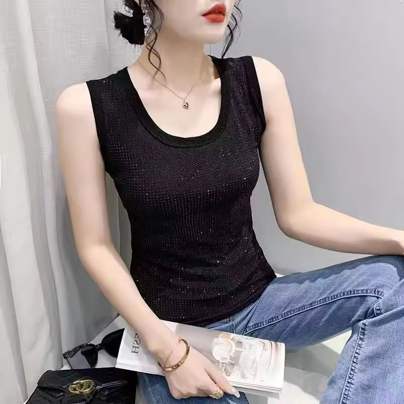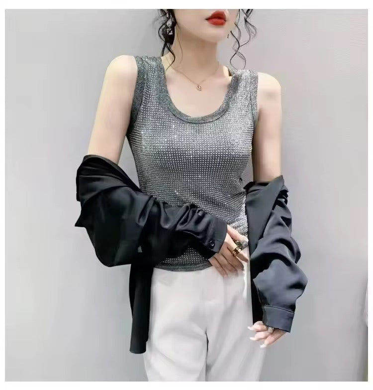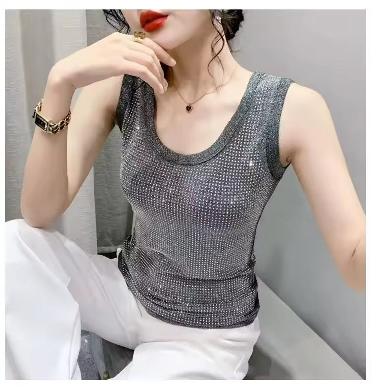 Each shirt is hand-embellished with a rhinestone that will shimmer and shine like stars, instantly upgrading your fashion style. This top has Sleeveless and scoop neck, metallic front and super soft fabric, lightweight and well elastic.
