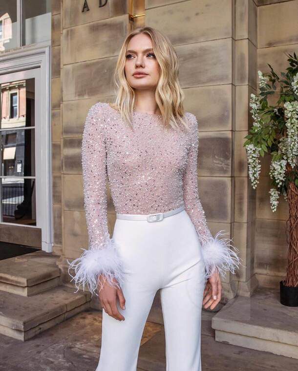 Fc Fashion Feather Sequin Stitching Jumpsuit