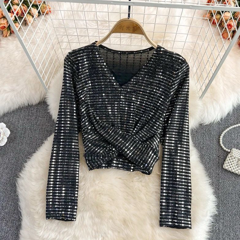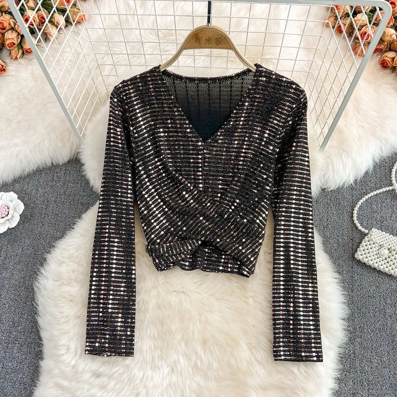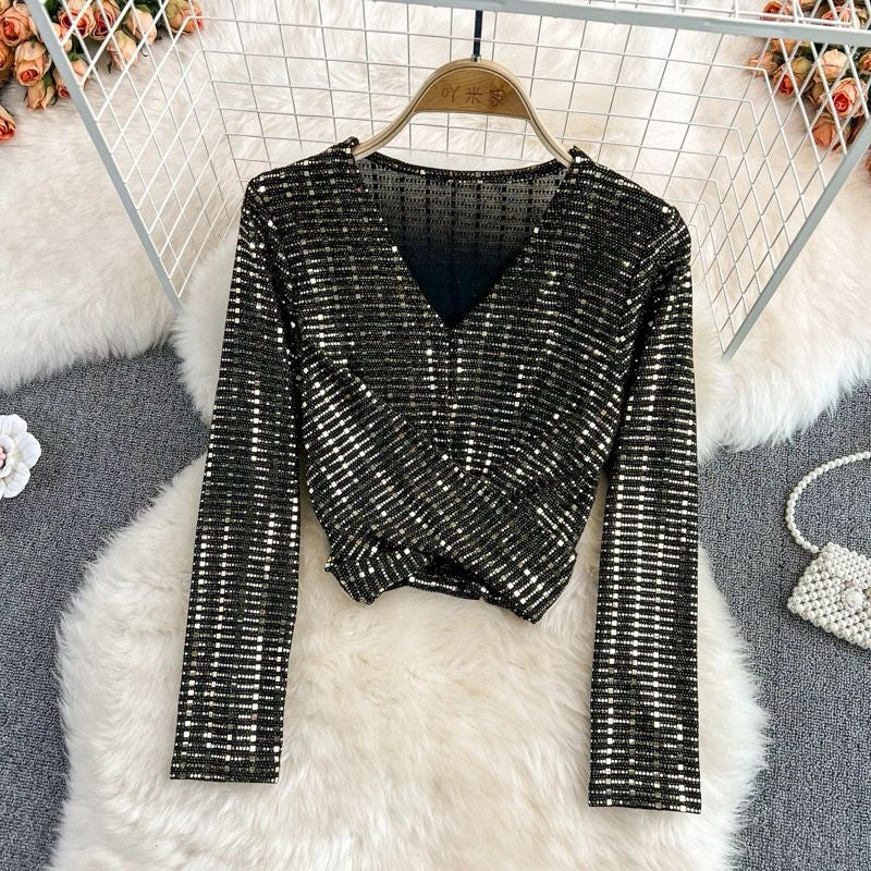 A Stylish Women Sequin Top features |High class dress | Casual Full Sleeves | V Neck | breathable | Summer | fashionable and sexy| soft and comfortable fabric | occasions Suitable for date, Party, vacation, beach, club, holiday or other occasions