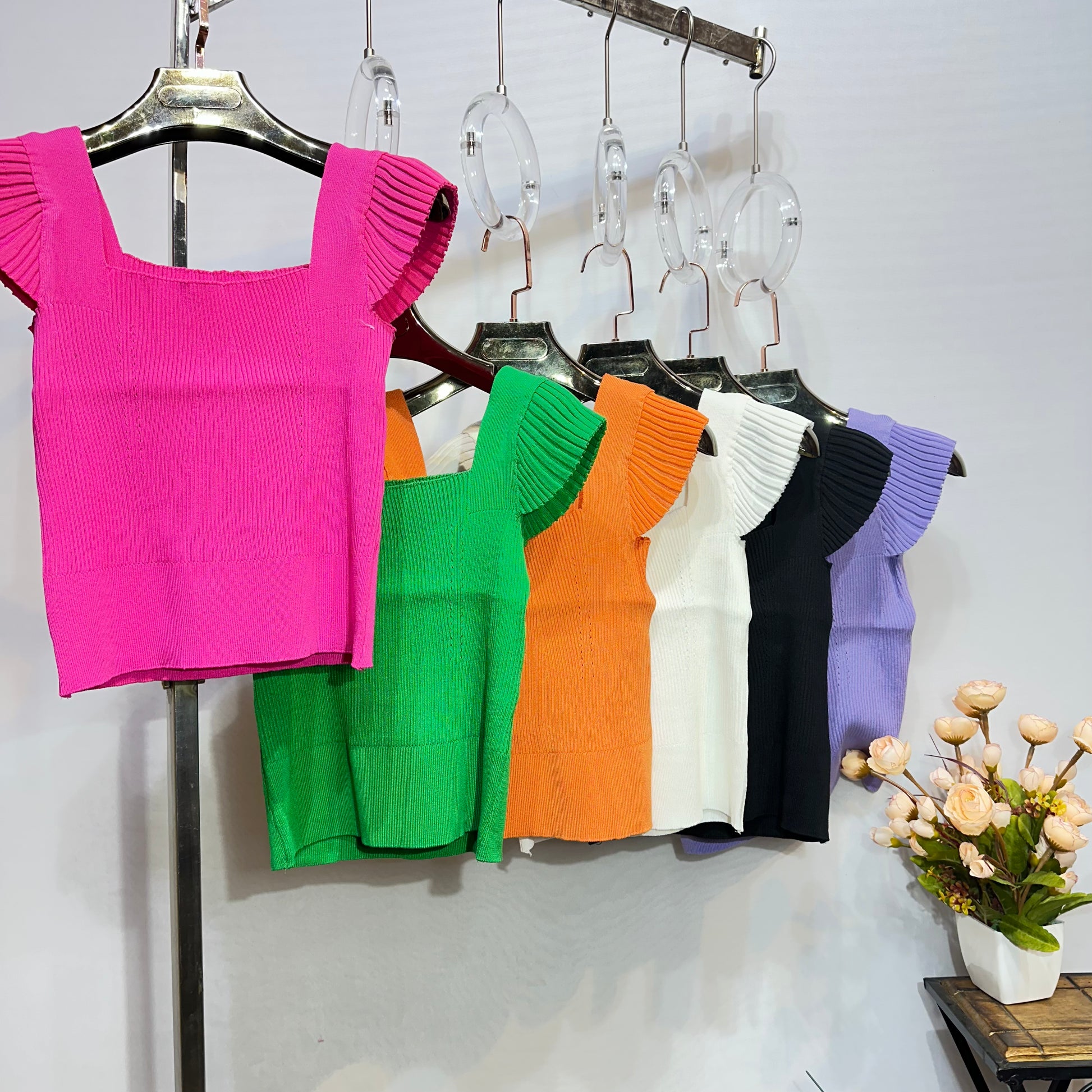 Our chic knitted crop top with flared sleeves, a versatile wardrobe essential. Available in six stunning solid colors, this top offers endless styling options for any occasion. Crafted from soft, stretchy knit fabric, it ensures all-day comfort while keeping you stylish. Perfect for spring and summer, its breathable construction keeps you cool. Whether for a casual day out or a night on the town, its elegant design effortlessly transitions between occasions. Elevate your look with this must-have crop top that seamlessly blends fashion and comfort.