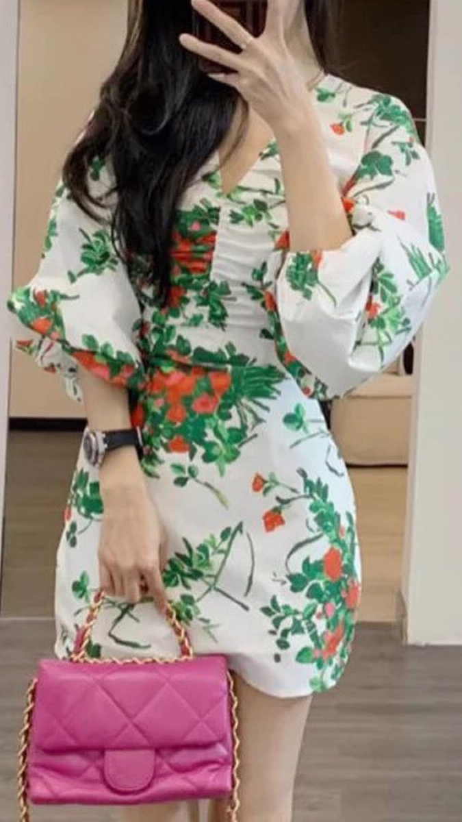 Fc Summer V Neck Wrinkled Cotton Floral Dress