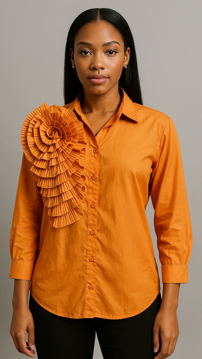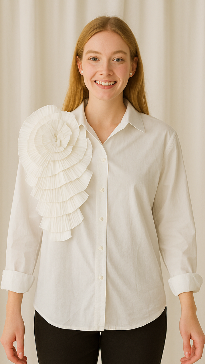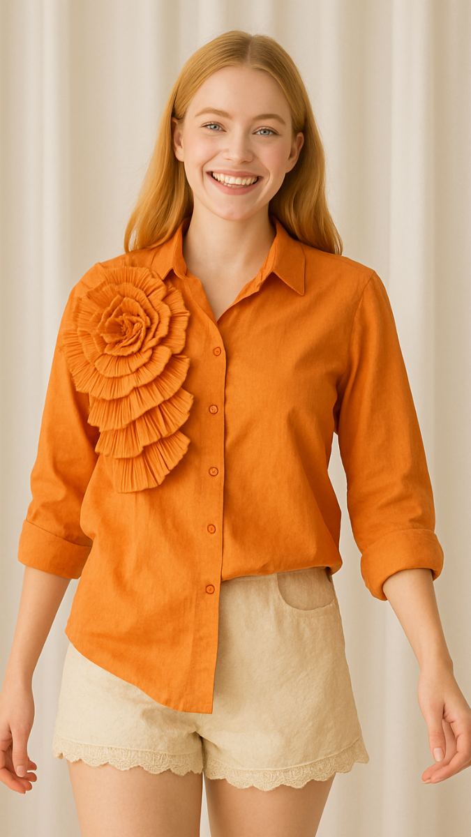 Bloom with elegance in our Flower Design Long Sleeve Shirts, where every day is a fresh and fashionable masterpiece. This shirt has full Sleeves, collar, 3D flower on one shoulder, long shirt styled shirt and button down in front. Suitable for home, office, shopping, party, vacation, school, party and any occasions you want.