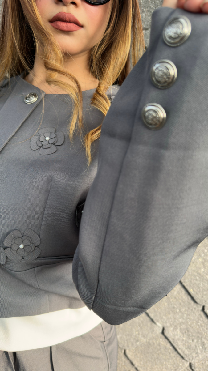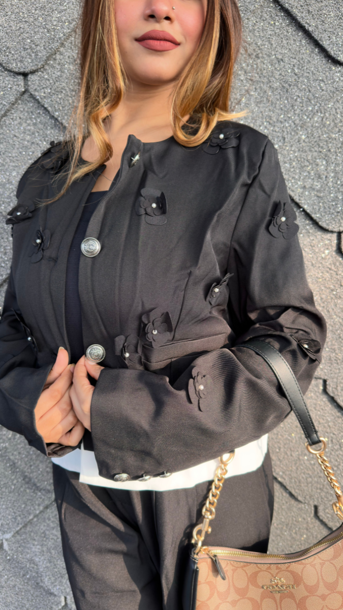 Flower Embedded Buttoned Front Top And Loose Pant Coord Set FC2044