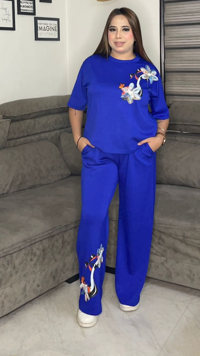 Flower Embedded Loose T- Shirt And Wide Pant Coord Set FC1789