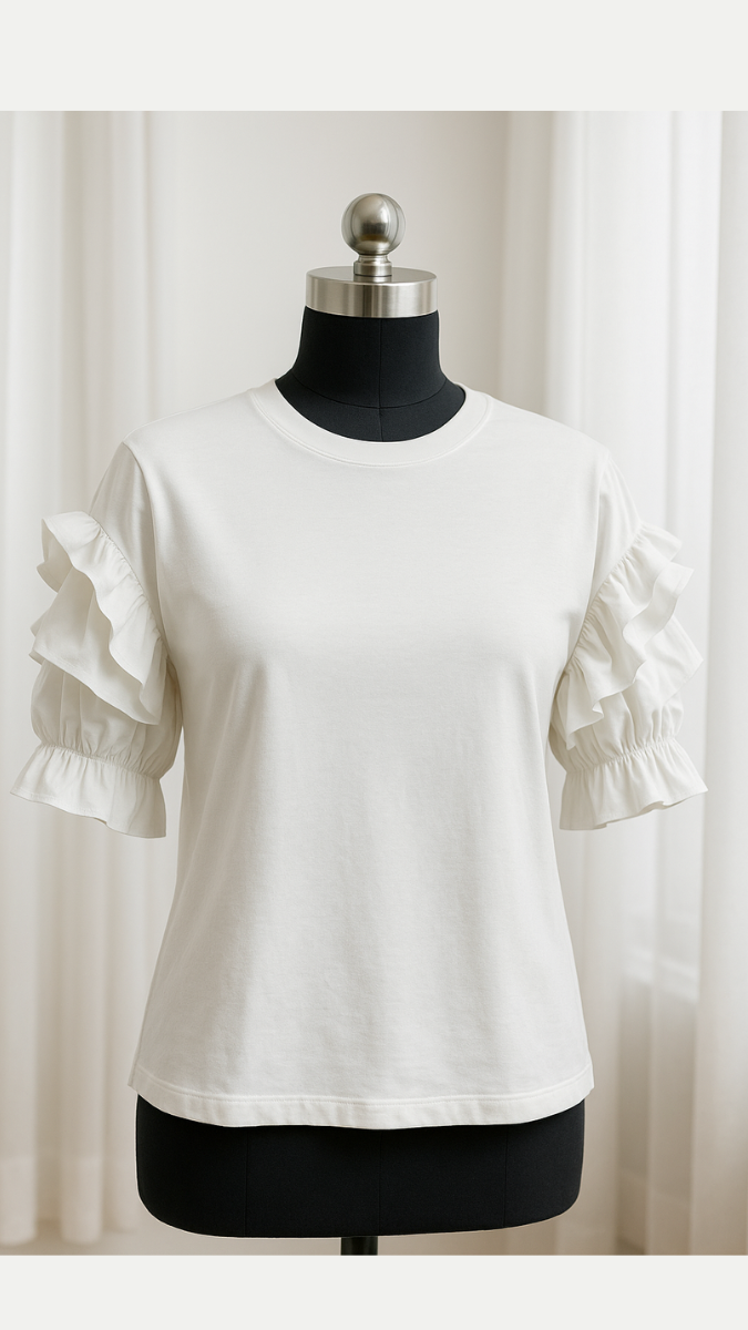 Elevate your wardrobe with this sophisticated Frill Sleeves Top. Meticulously crafted with delicate frills along the sleeves, this piece offers a perfect balance of elegance and contemporary style. The thoughtful design ensures versatility for both casual outings and semi-formal occasions, while the quality construction promises lasting comfort and durability throughout the day.