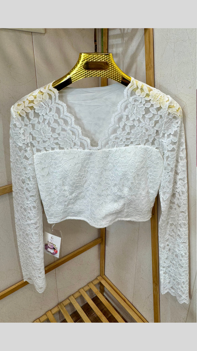Elevate your wardrobe with the Full Sleeve Net Crop Top, designed for a sophisticated yet contemporary look. Crafted from delicate net fabric, this top offers breathable comfort while accentuating your silhouette subtly. The full-length sleeves add elegance, making it an ideal choice for layering or wearing solo on special occasions. Its cropped fit pairs seamlessly with high-waisted bottoms, balancing style and grace for a refined, expert-approved appearance.