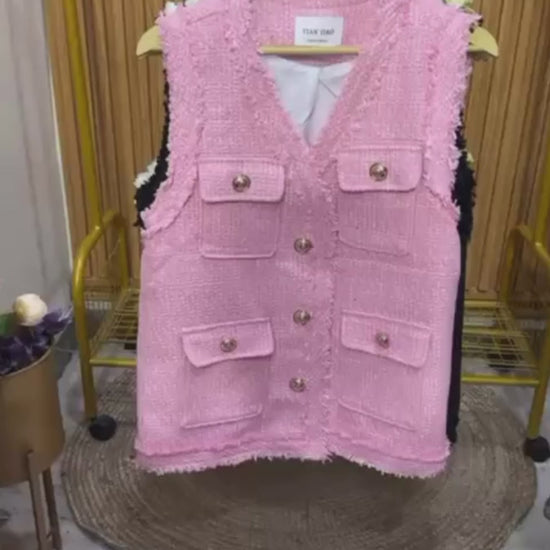 Elevate your layering game with this sophisticated sleeveless vest, featuring luxurious fur-designed detailing that adds texture and visual interest. The strategically placed pockets deliver practical functionality without compromising style, while the sleeveless silhouette makes it versatile enough to wear over shirts, sweaters, or dresses. Perfect for transitional seasons, this piece combines contemporary design with timeless appeal, offering a polished look that works equally well for casual outings or more refined occasions. A wardrobe essential that bridges the gap between comfort and elegance.