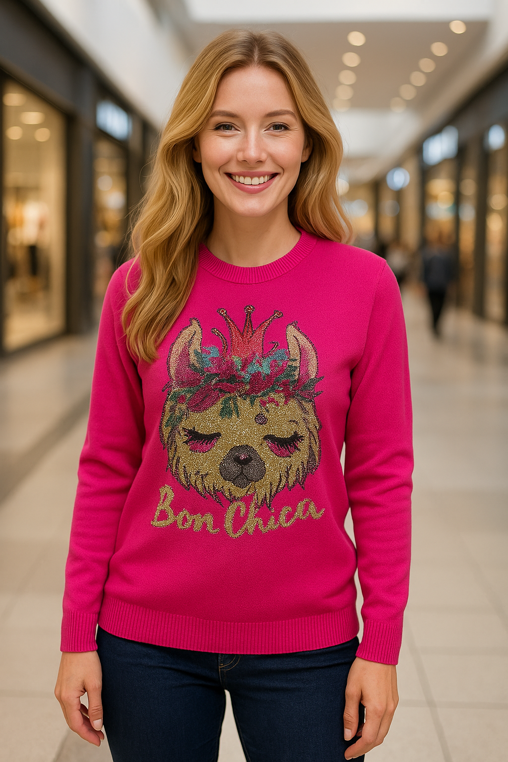 Step out in style in this Glittering Cat Winter Top. This top has round neck, full sleeves, glittering cat printed on front and full length. Suitable for work office, daily life, travel, shopping, street style, urban chic outfits and outgoing.