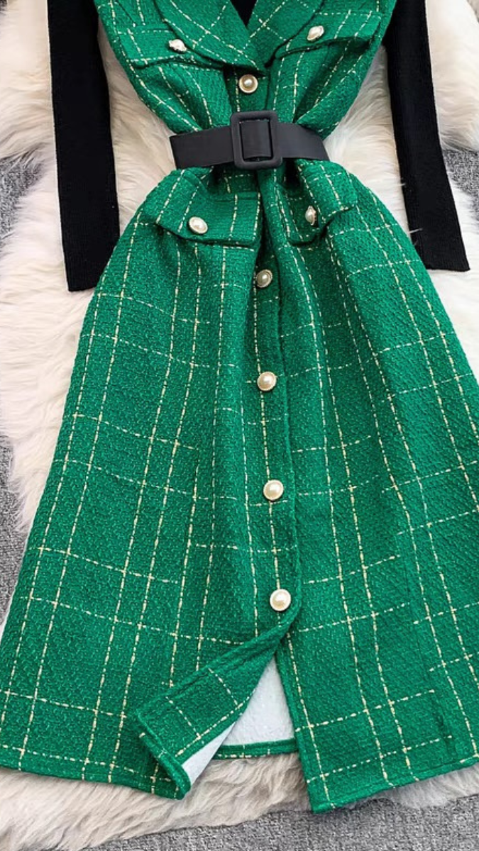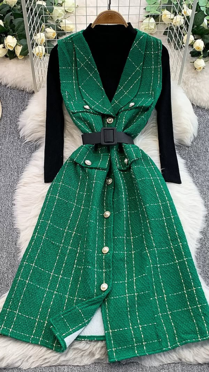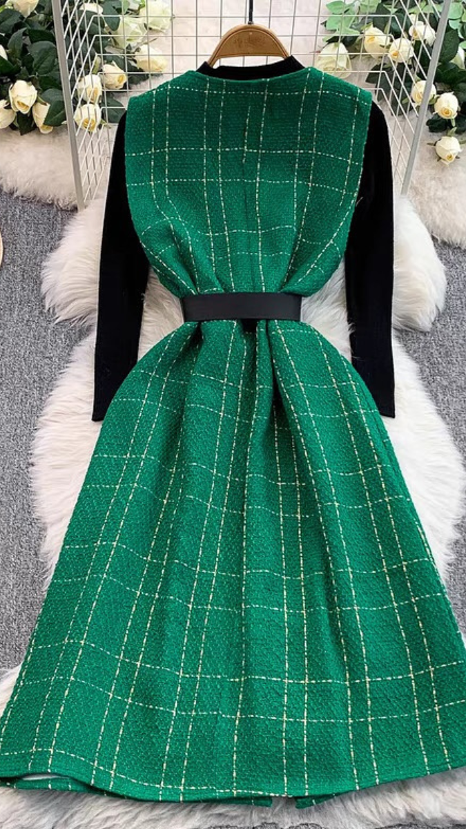 High neck Inner With V Neck Midi Dress FC2087