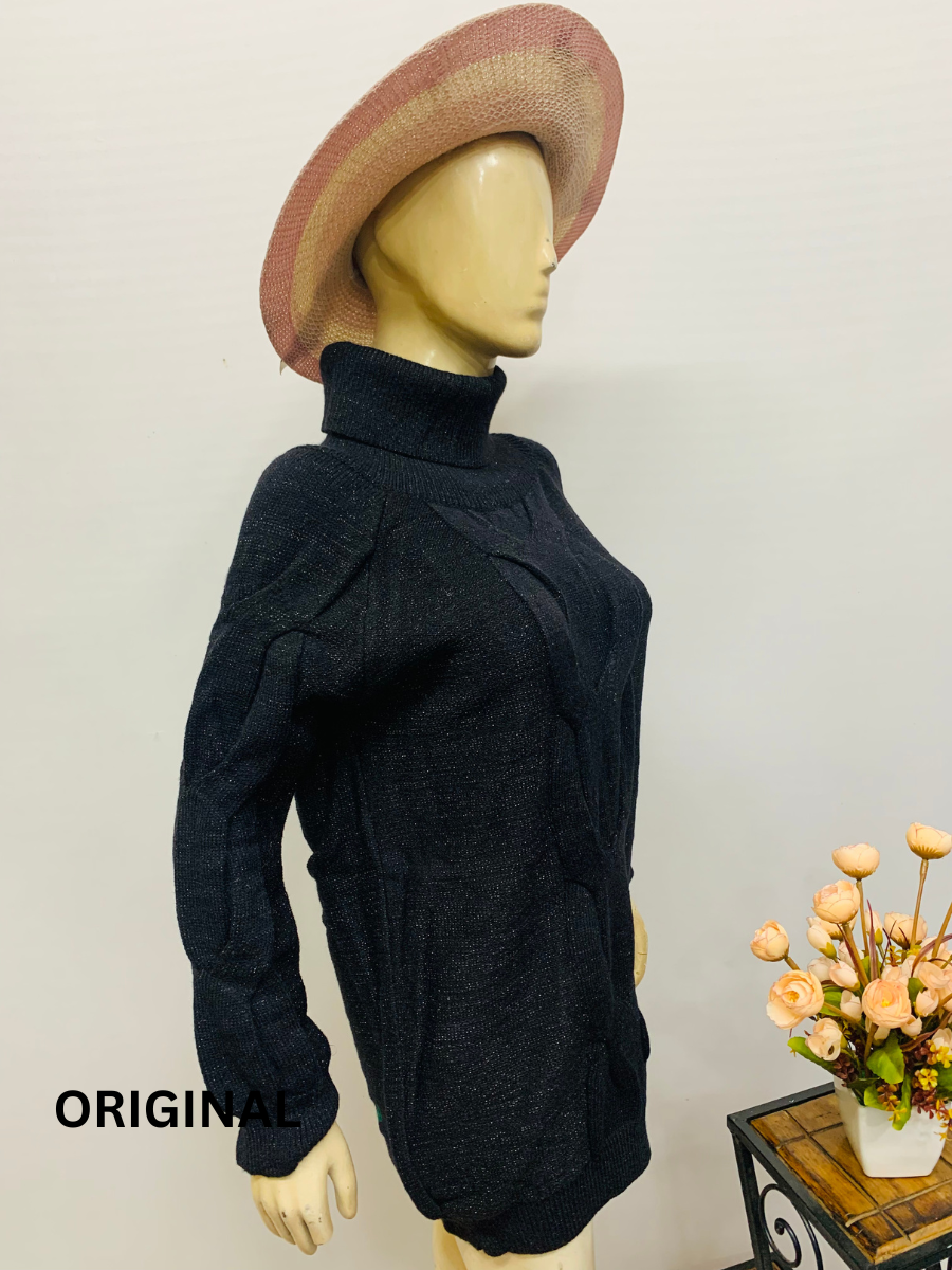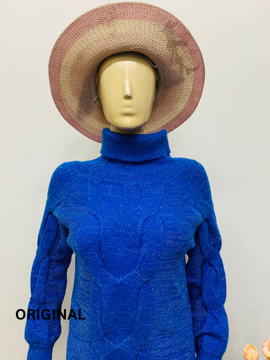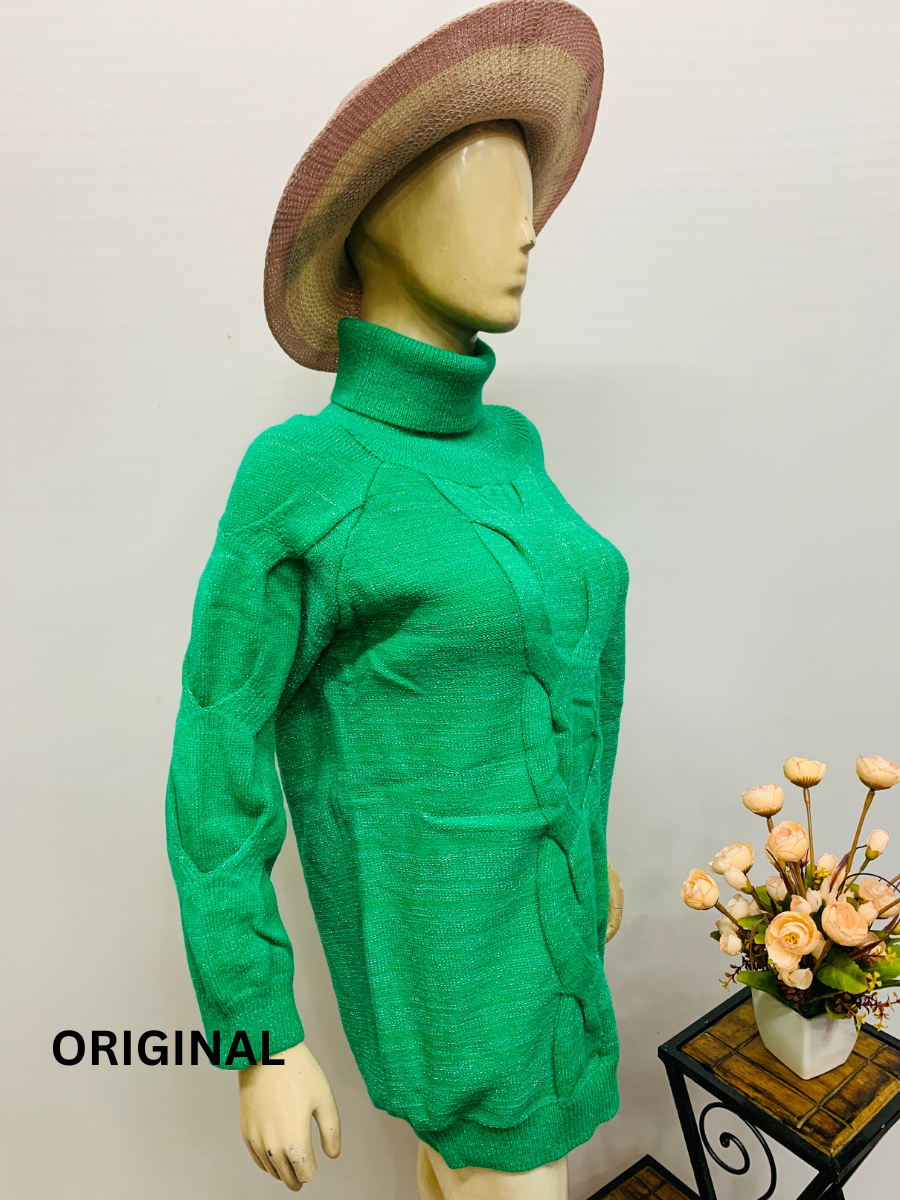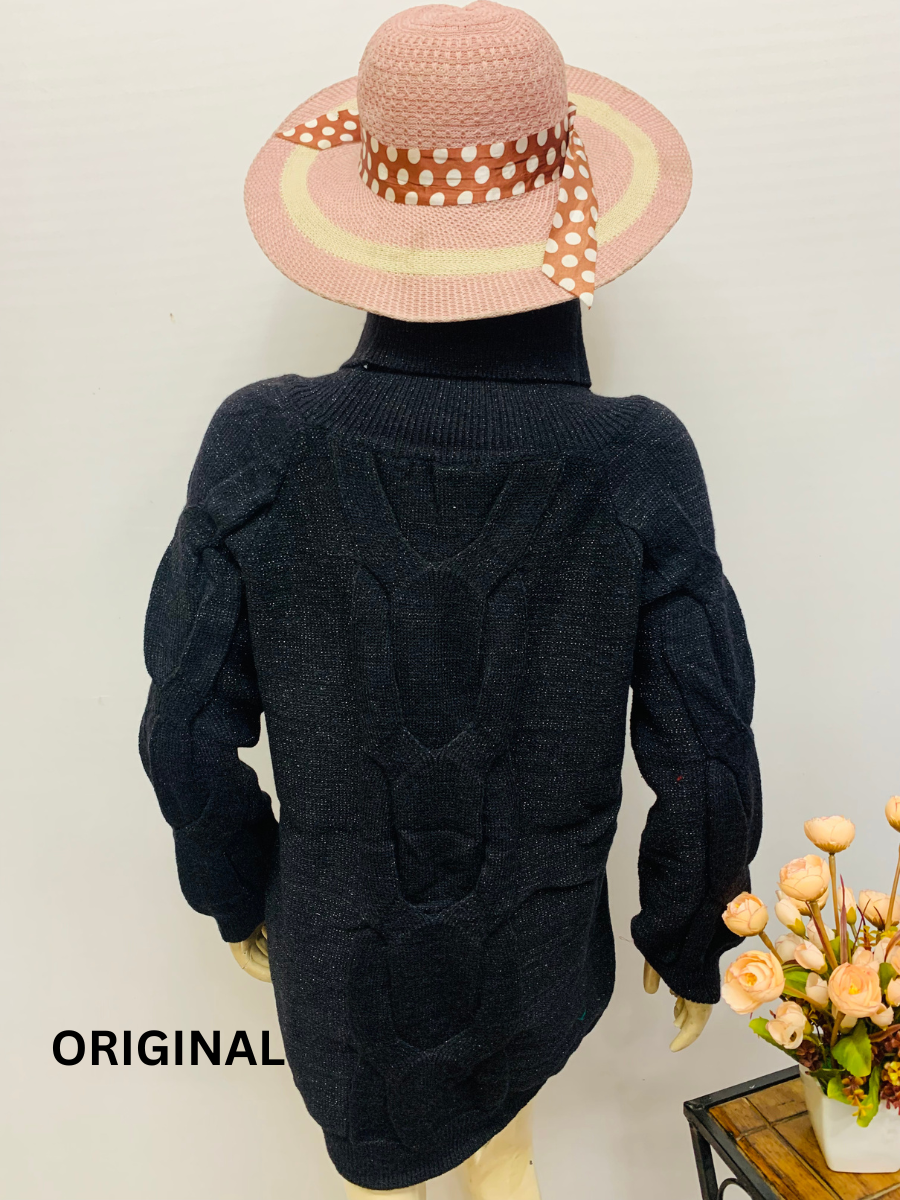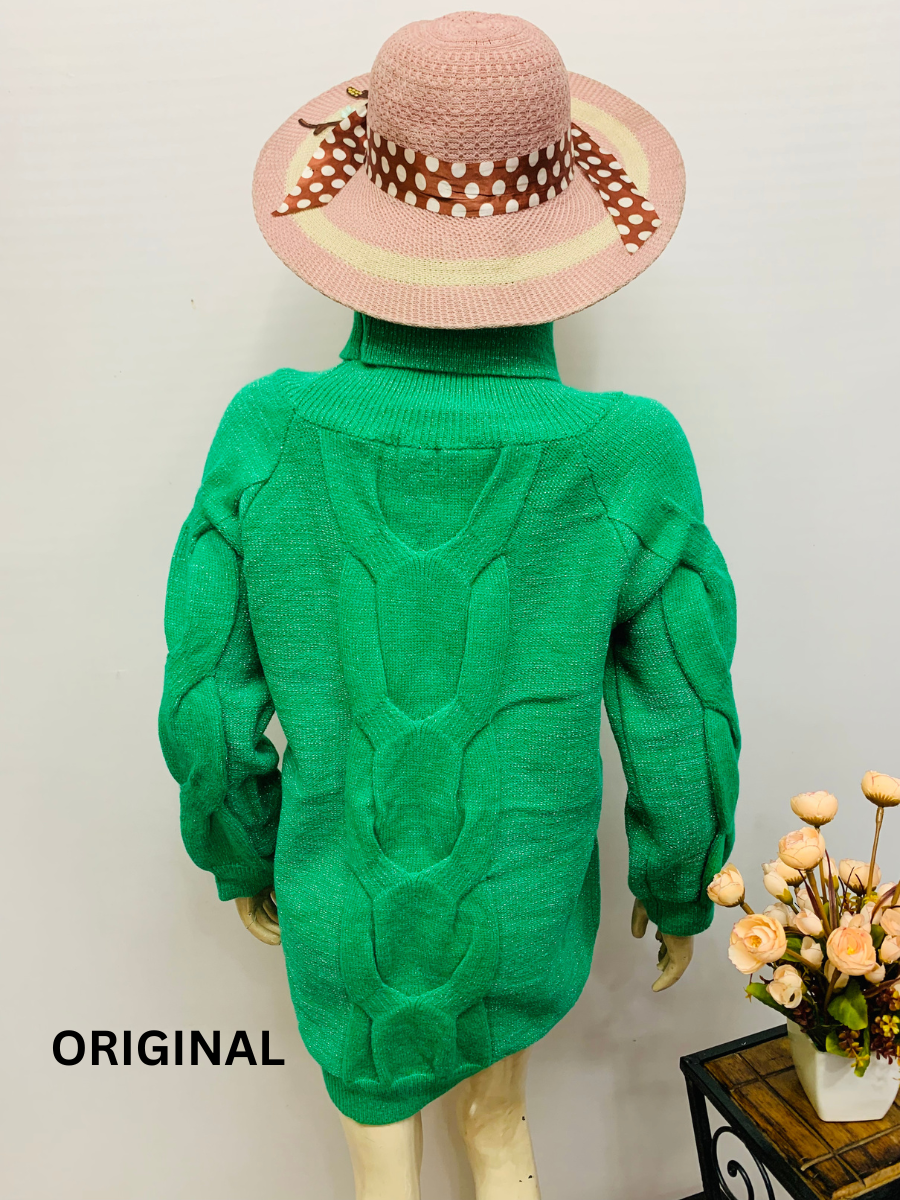 Introducing our Beautiful Knit Long Cardigan High Neck Women Sweater Dress, the perfect addition to your wardrobe. This dress features high collar, full sleeves, design in front and short length. Perfect for daily wear, nightclub, date, party, casual, dating.