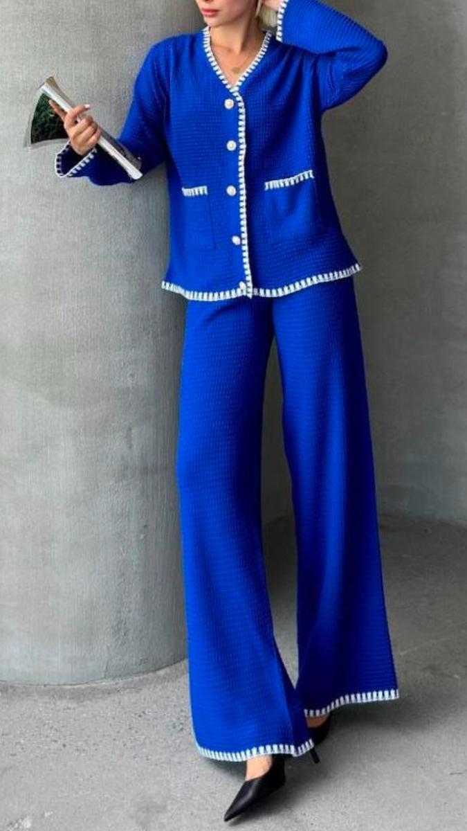 This Knitted Coord Set With Contrast Trim is crafted with superior quality materials, ensuring durability and comfort. The contrast trim adds a stylish touch to the coordinated set, making it a versatile and trendy addition to any wardrobe. Perfect for any occasion, stay chic and comfortable in this must-have set.