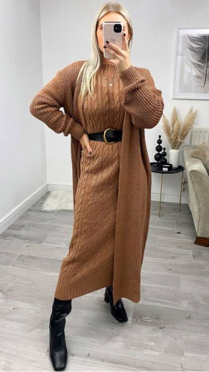 Expertly crafted in a knitted design, our FC Knitted High Neck Sweater is the epitome of style and comfort. Featuring a high neckline and a jacket for added warmth, this dress is perfect for any occasion. Stay chic and cozy with this versatile piece.