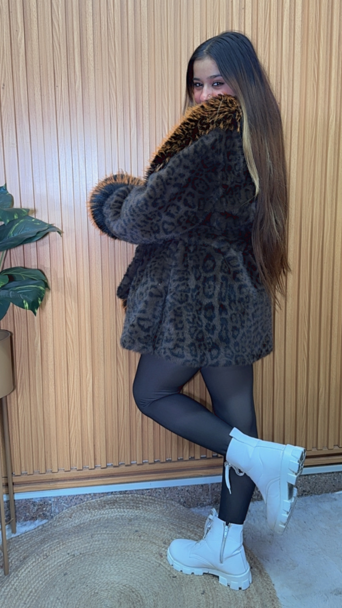 Elevate your winter wardrobe with this striking leopard print coat, featuring a luxurious faux fur collar that adds instant sophistication. The bold animal print delivers contemporary edge while the contrasting fur trim frames the face beautifully, creating a polished silhouette. Crafted for style-conscious individuals who refuse to compromise on impact, this piece transitions seamlessly from casual outings to evening occasions. The structured design ensures flattering coverage, while premium materials promise durability through multiple seasons. A versatile investment piece that transforms any ensemble into a fashion statement.